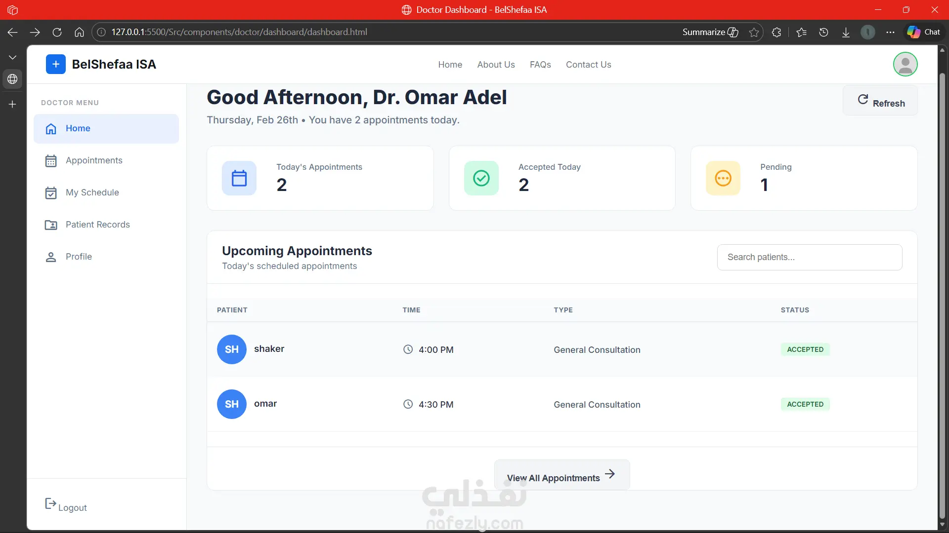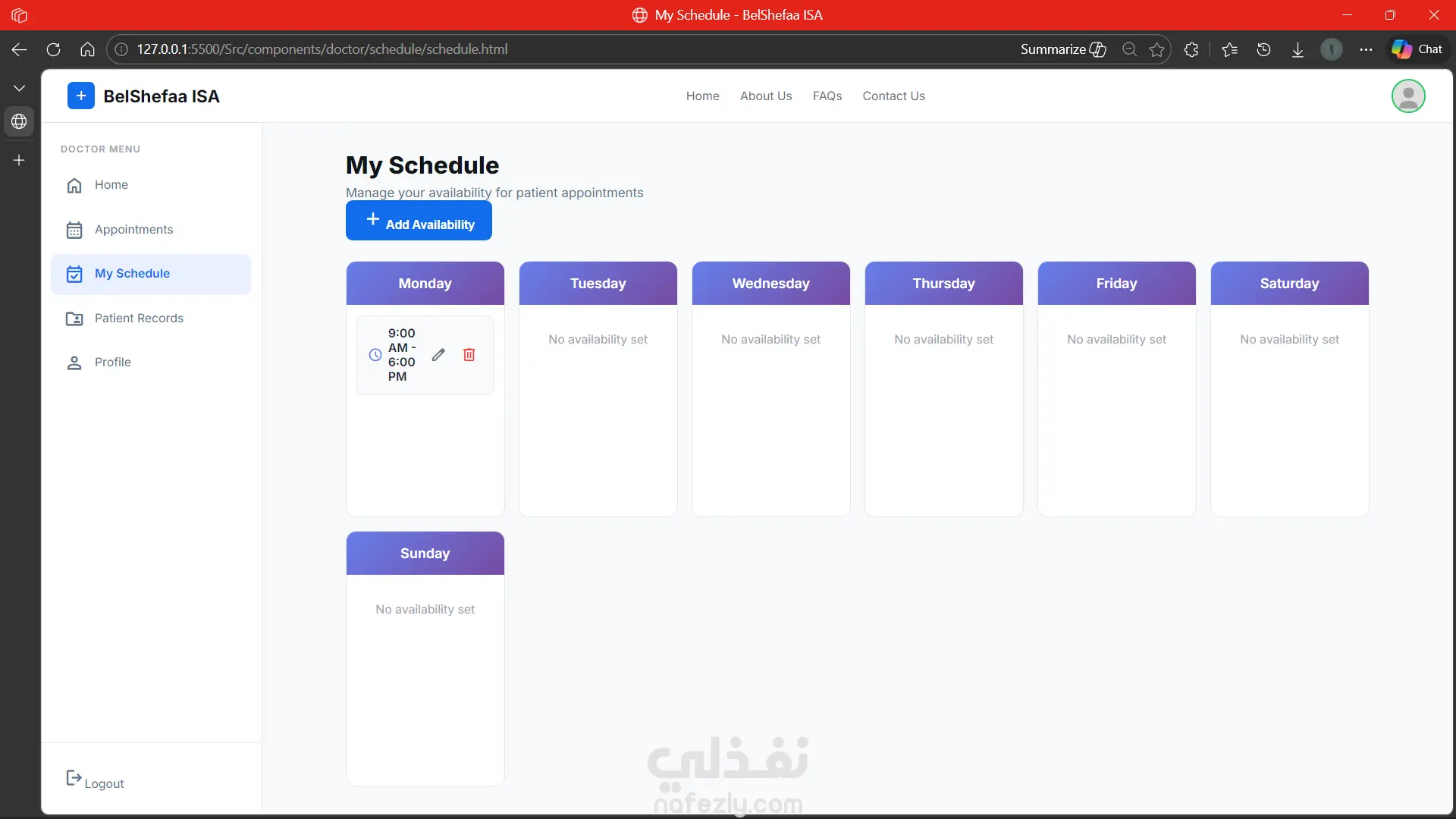 منصة متكاملة لإدارة خدمات التأهيل والعلاج الطبيعي، تربط بين المرضى والأطباء والإداريين في نظام واحد سهل الاستخدام. يتيح النظام للمرضى البحث عن الأطباء، حجز المواعيد، متابعة السجلات الطبية، وتقييم الخدمات. كما يوفر للأطباء أدوات لإدارة المواعيد، تحديد جداول التوفر الأسبوعية، وإنشاء السجلات الطبية. أما المسؤول فيمكنه إدارة المستخدمين، مراقبة المواعيد، وعرض الإحصائيات والتقارير. تم تطوير المشروع باستخدام HTML وCSS وJavaScript مع استخدام JSON Server كمحاكاة لواجهة REST API، مع تطبيق نظام مصادقة وتحديد صلاحيات الوصول حسب دور المستخدم، بالإضافة إلى تصميم متجاوب يعمل على مختلف الأجهزة.
