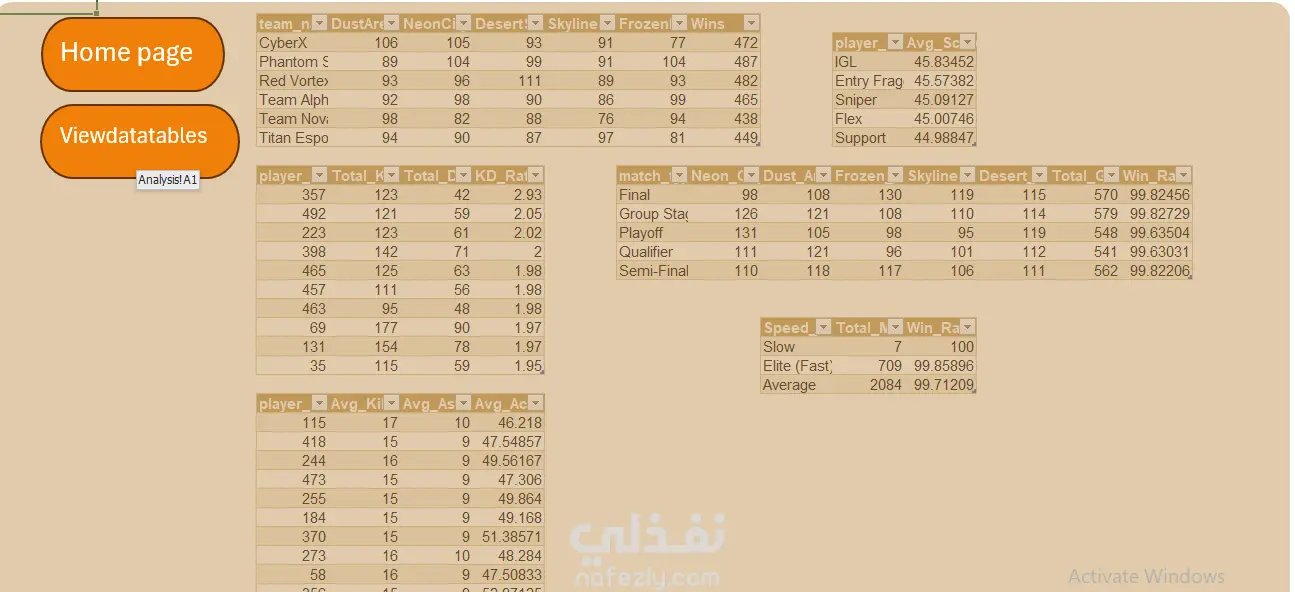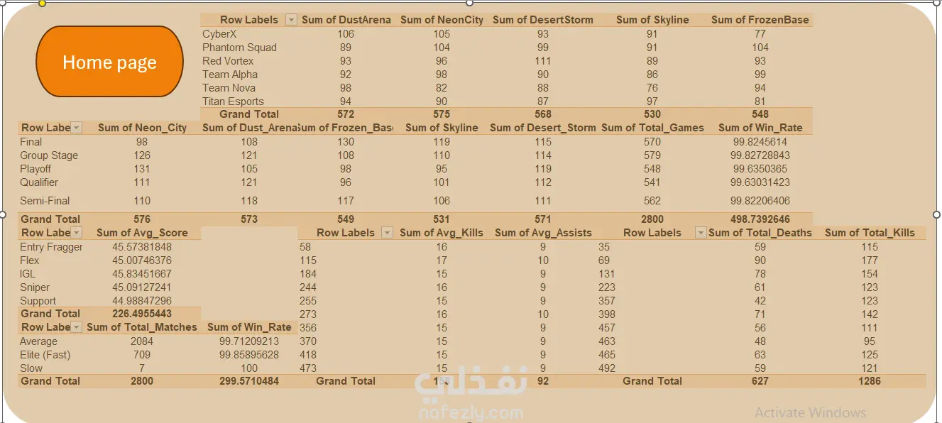 تحليل استراتيجي لأداء اللاعبين ومعدلات الفوز في لعبة باستخدام SQL و Excel