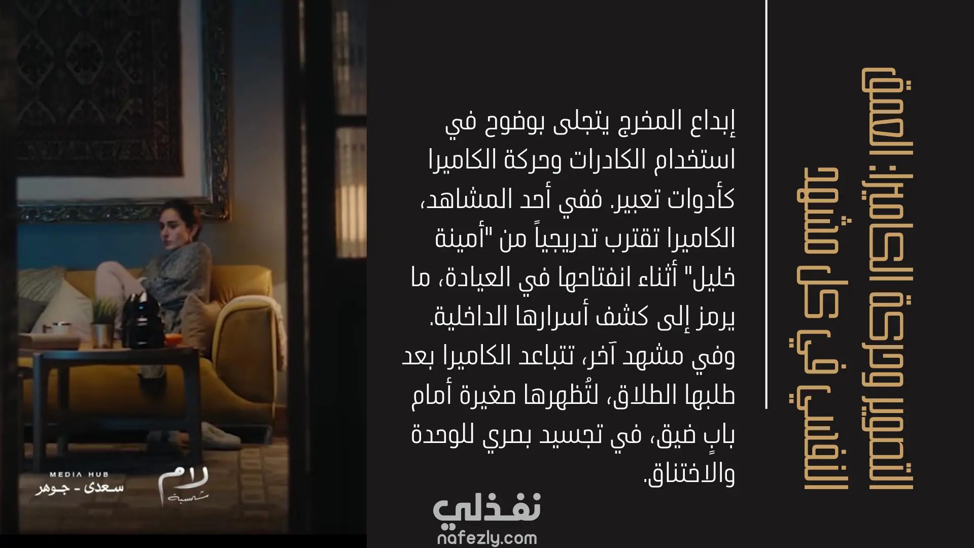 ـ استخدام ستايل "Film Strip" وتنسيق ألوان (الأسود والذهبي) ليعكس فخامة العمل الدرامي.