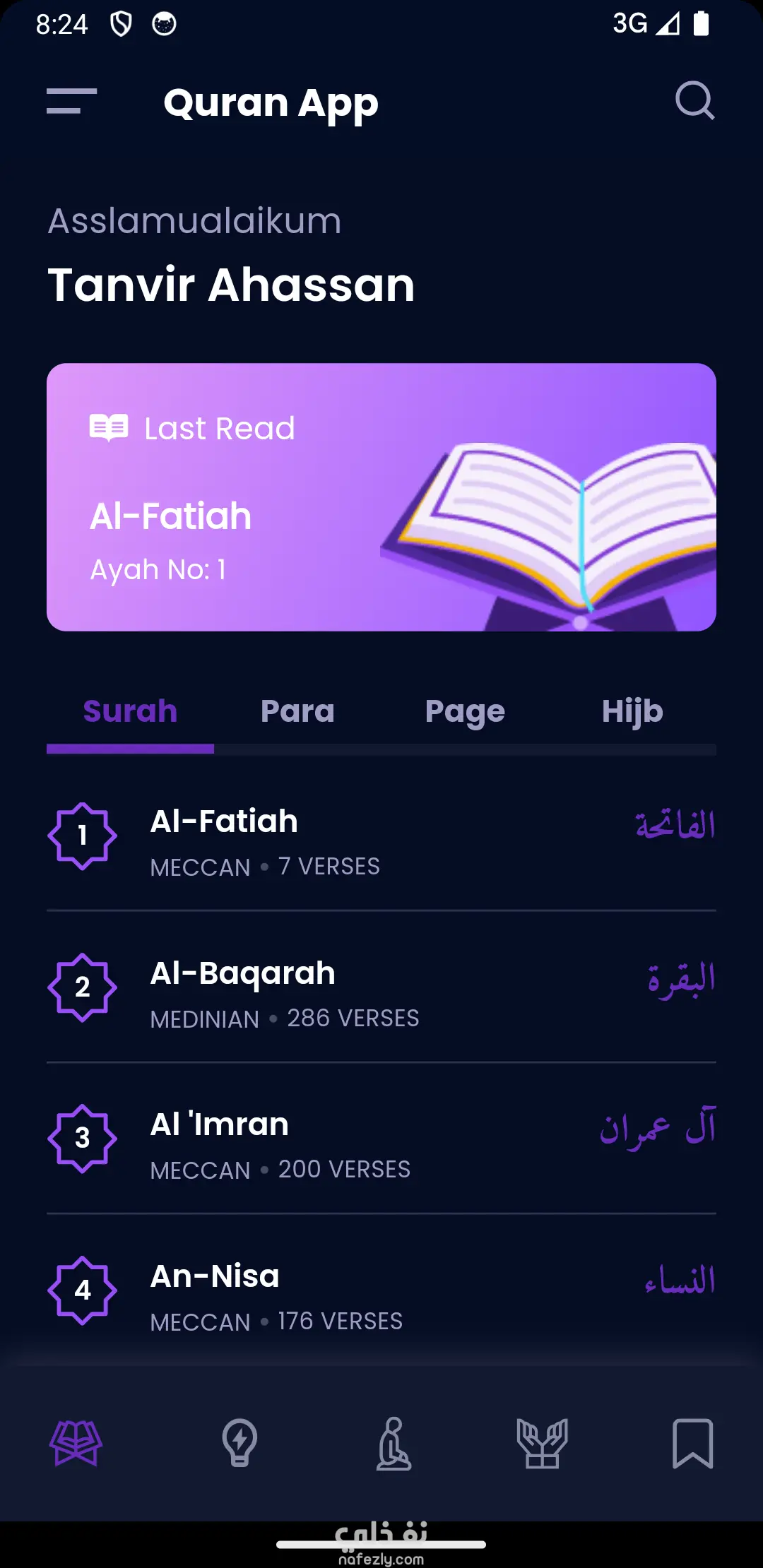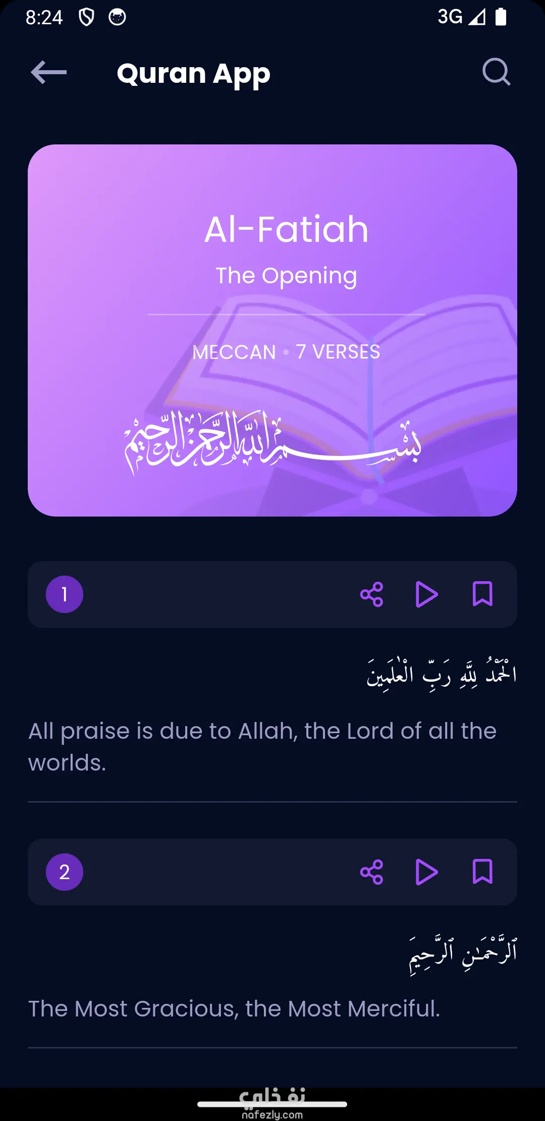 نموذج تصميم واجهات: تطبيق القرآن الكريم "أعرض لكم نموذجاً لتصميم واجهة تطبيق القرآن الكريم، حيث ركزت فيه على تقديم تجربة مستخدم (UX) هادئة ومريحة للعين، مع ميزات تصميمية تشمل:" تنسيق نصوص متقدم: واجهات مخصصة للقراءة مع إمكانية تبديل الخطوط والأحجام. نظام الأنماط (Themes): دعم الوضع الليلي والنهاري بشكل احترافي. تصميم الأدوات التفاعلية: أيقونات مخصصة لمواضع السجود وعلامات مرجعية للأيات.