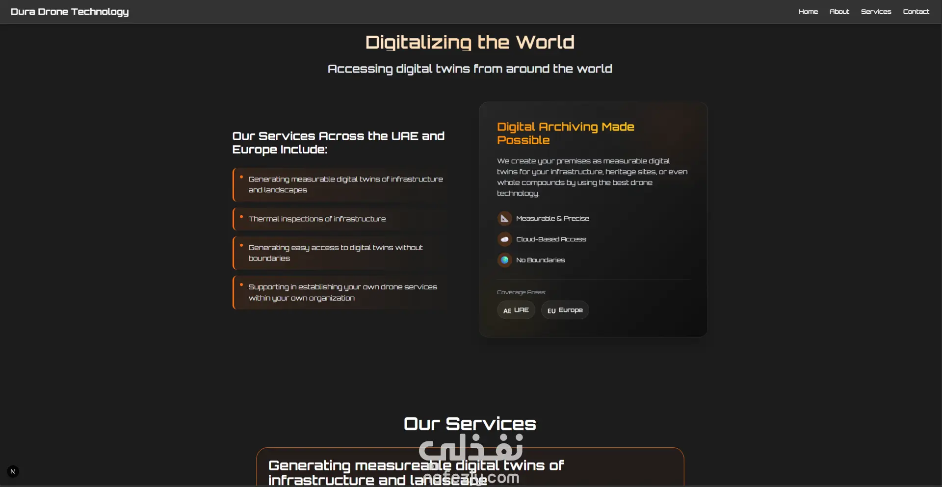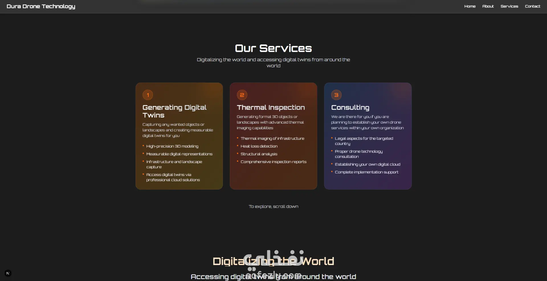 لمشروع عبارة عن تصميم وتطوير صفحة هبوط (Landing Page) من صفحة واحدة (Single Page) سريعة ومحسنة، تهدف إلى استقطاب العملاء للشركات (B2B). تركز الصفحة على إبراز قدرة الشركة على مسح المواقع باستخدام طائرات الدرون (باستخدام تقنيات مثل Photogrammetry أو LiDAR) وتحويلها إلى نماذج ثلاثية الأبعاد دقيقة وقابلة للتفاعل، بهدف دفع الزائر لطلب عرض سعر أو حجز استشارة.