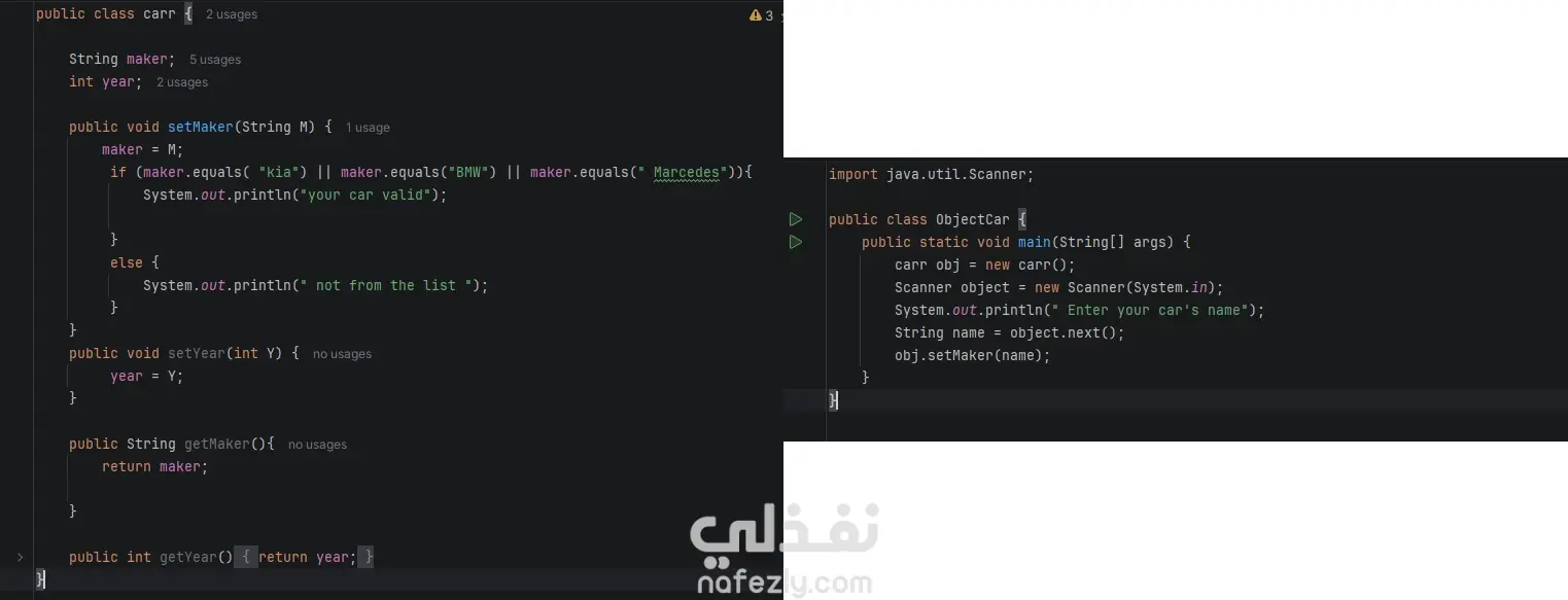 a class that see if the type of car is from the list or not using OOP