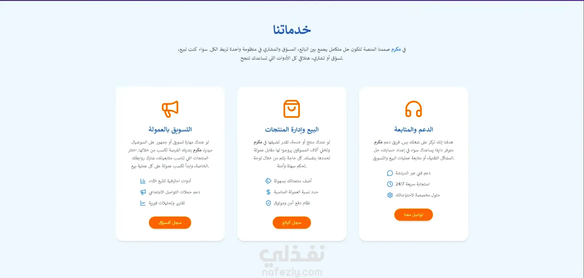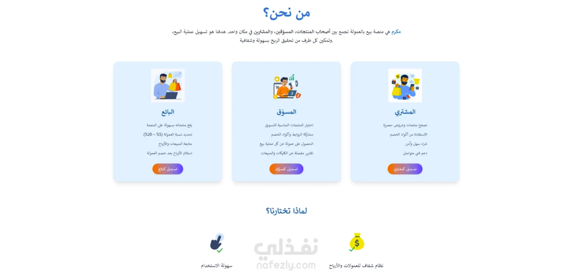 أشتغل على Website لعرض وبيع المنتجات وحوّلته لفكرة منصة Affiliate Marketing متكاملة: أي Seller يعرض منتجاته بسهولة أي Marketer يبيع المنتجات ويحصل على عمولة على كل Sale بدون مخزون، وبدون أي تكلفة على المسوق اشتغلت على تصميم النظام بالكامل، وتطوير Back-End باستخدام Laravel وFront-End باستخدام Next.js و React، مع لوحة تحكم احترافية للبائعين والمسوقين. الفائدة للمستخدمين بيع المنتجات بسهولة وكسب عمولة بدون مخاطرة زيادة مبيعات البائعين بدون مجهود إضافي متابعة دقيقة للمبيعات والعمولات عبر لوحة التحكم الجانب التقني Laravel + RESTful API Next.js و React MySQL لإدارة المنتجات والمسوقين والبائعين نظام عمولات آلي لكل Sale تصميم متجاوب لجميع الأجهزة
