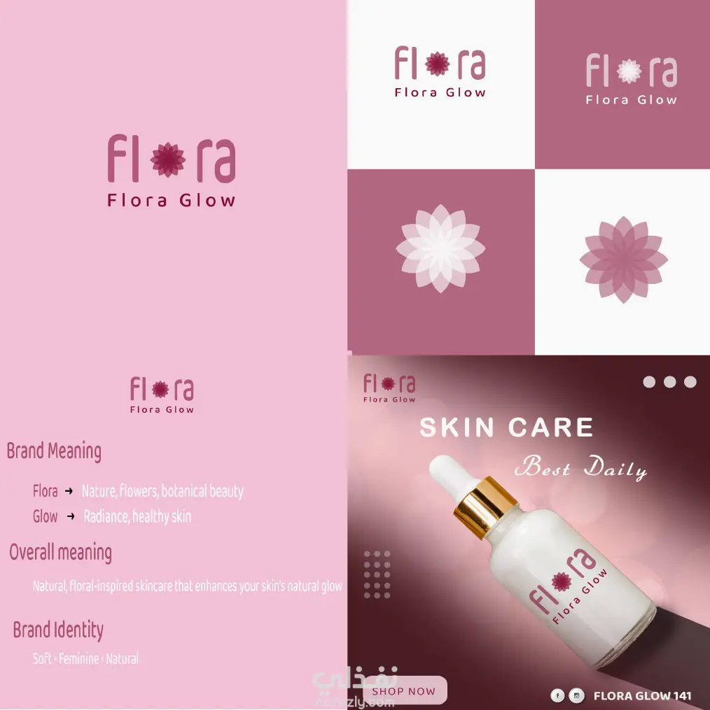 تصميم لوجو احترافي لبراند سكين كير Flowra