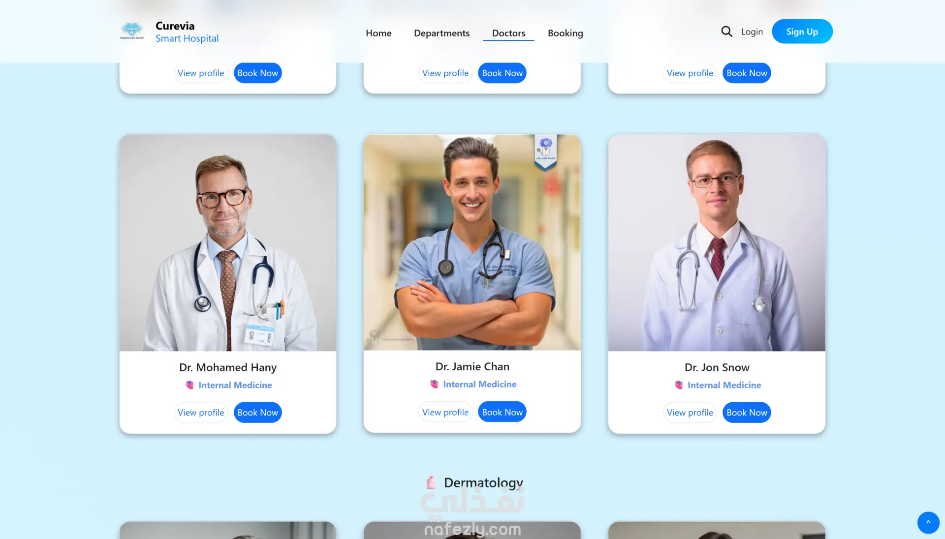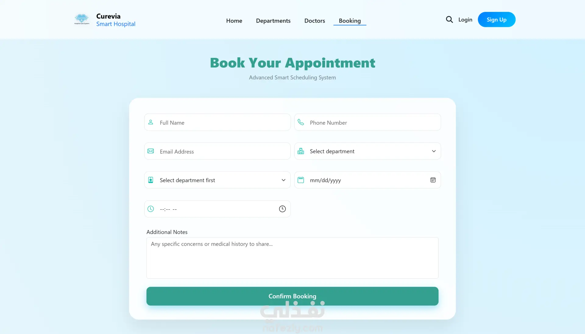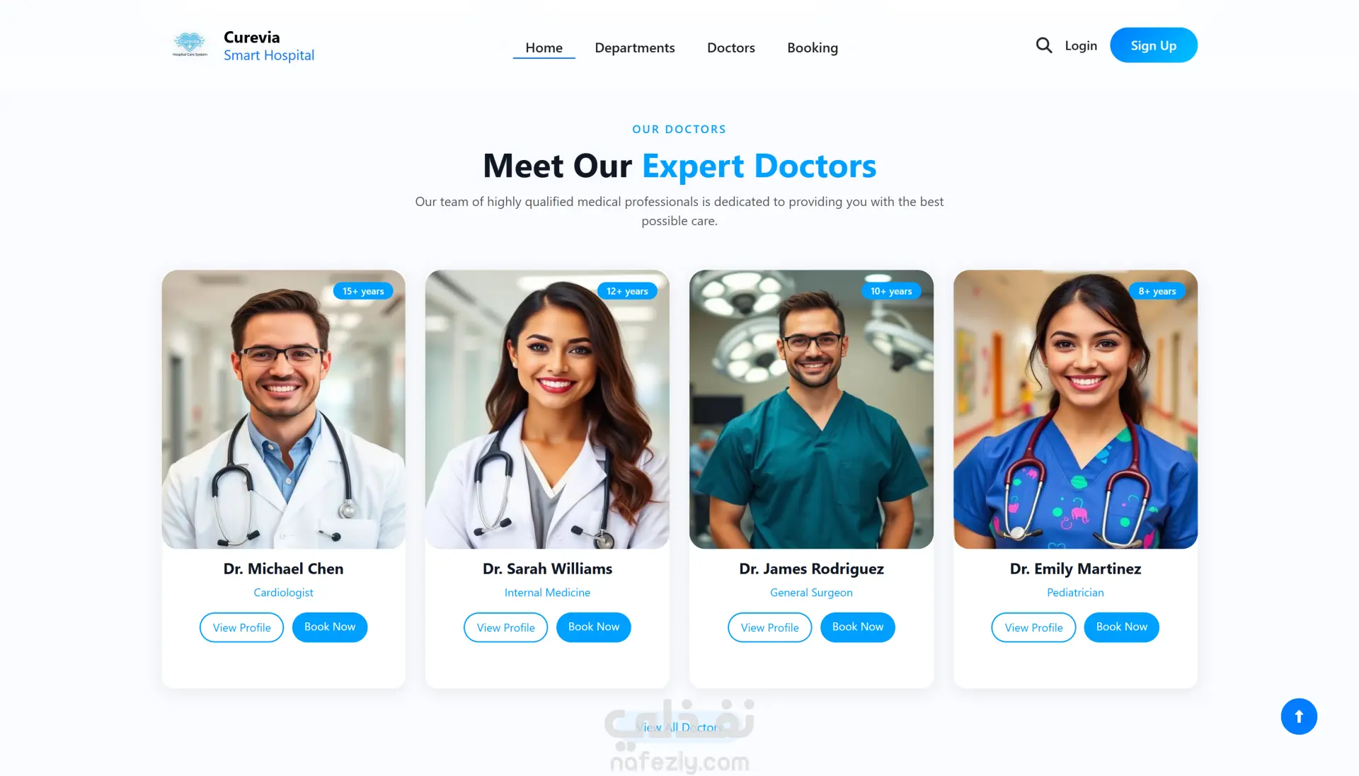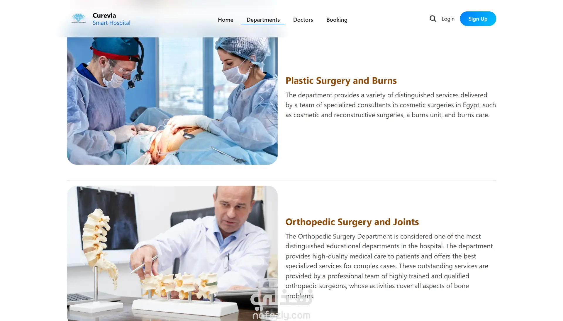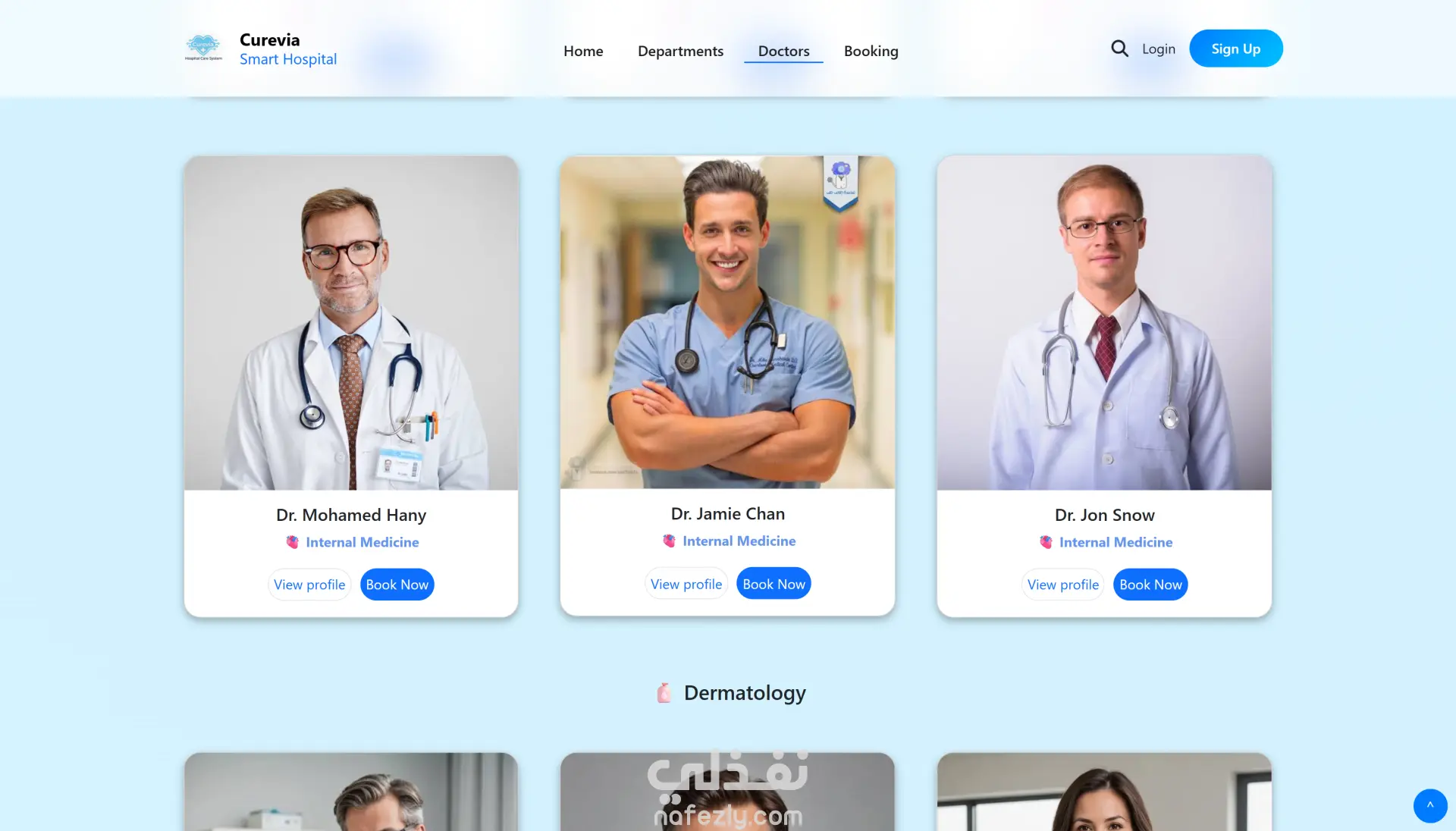 قمت بتصميم وتطوير موقع إلكتروني متكامل لمستشفى ذكي باسم Curevia يهدف إلى تحسين تجربة المرضى وتسهيل إدارة الخدمات الطبية رقميًا.