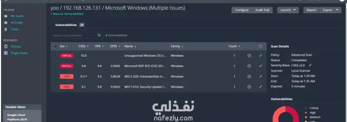قمت بالعمل على فحص عنوان IP وتحليل مستوى الأمان الخاص به، من خلال استخدام أداة Nessus لاكتشاف الثغرات الأمنية المحتملة. شمل العمل تشغيل عملية الفحص، تحليل نتائج التقرير، وتحديد الثغرات الموجودة مع فهم طبيعتها ومستوى خطورتها، وذلك بهدف التعرف على نقاط الضعف الأمنية وتحسين مستوى الحماية.