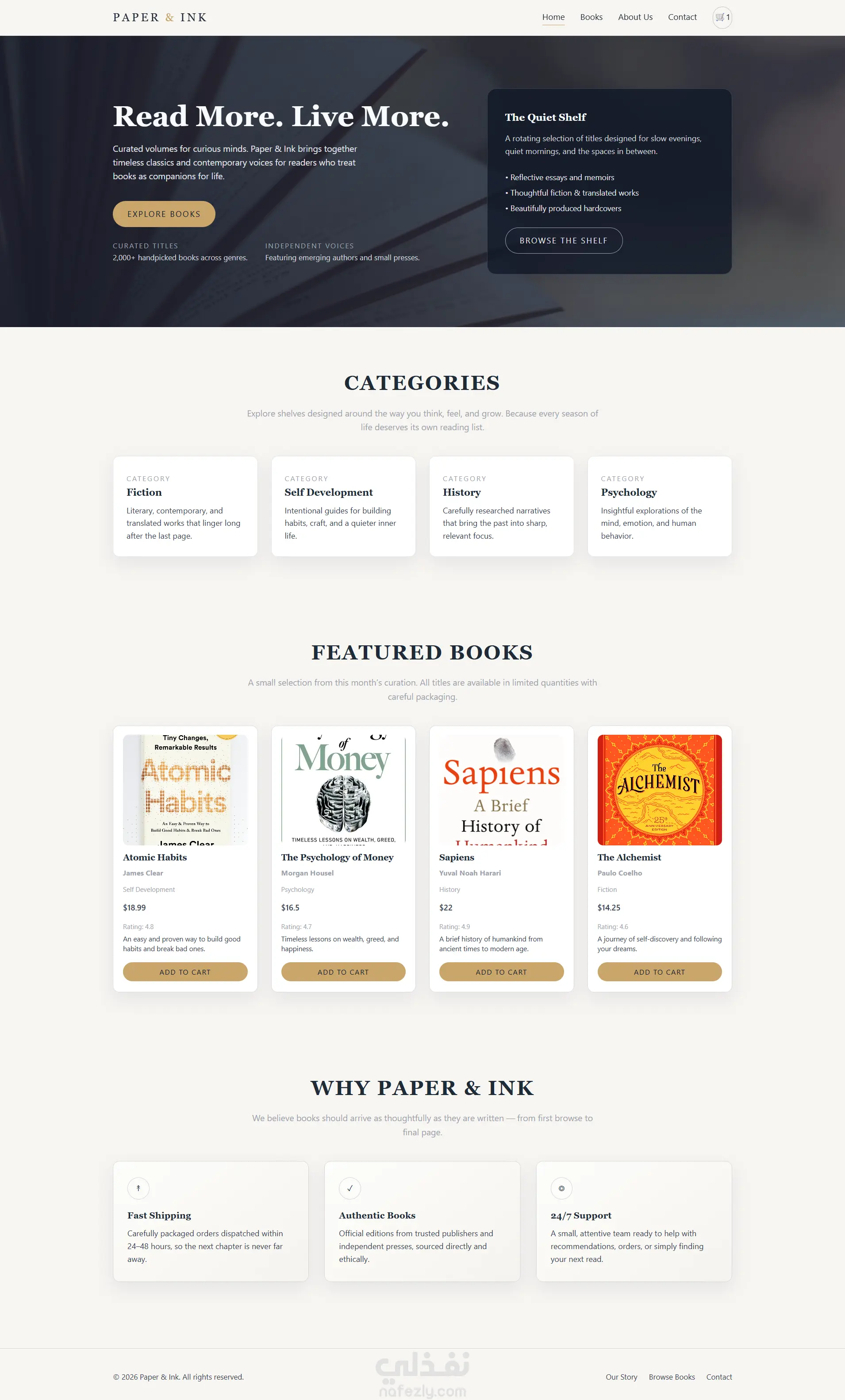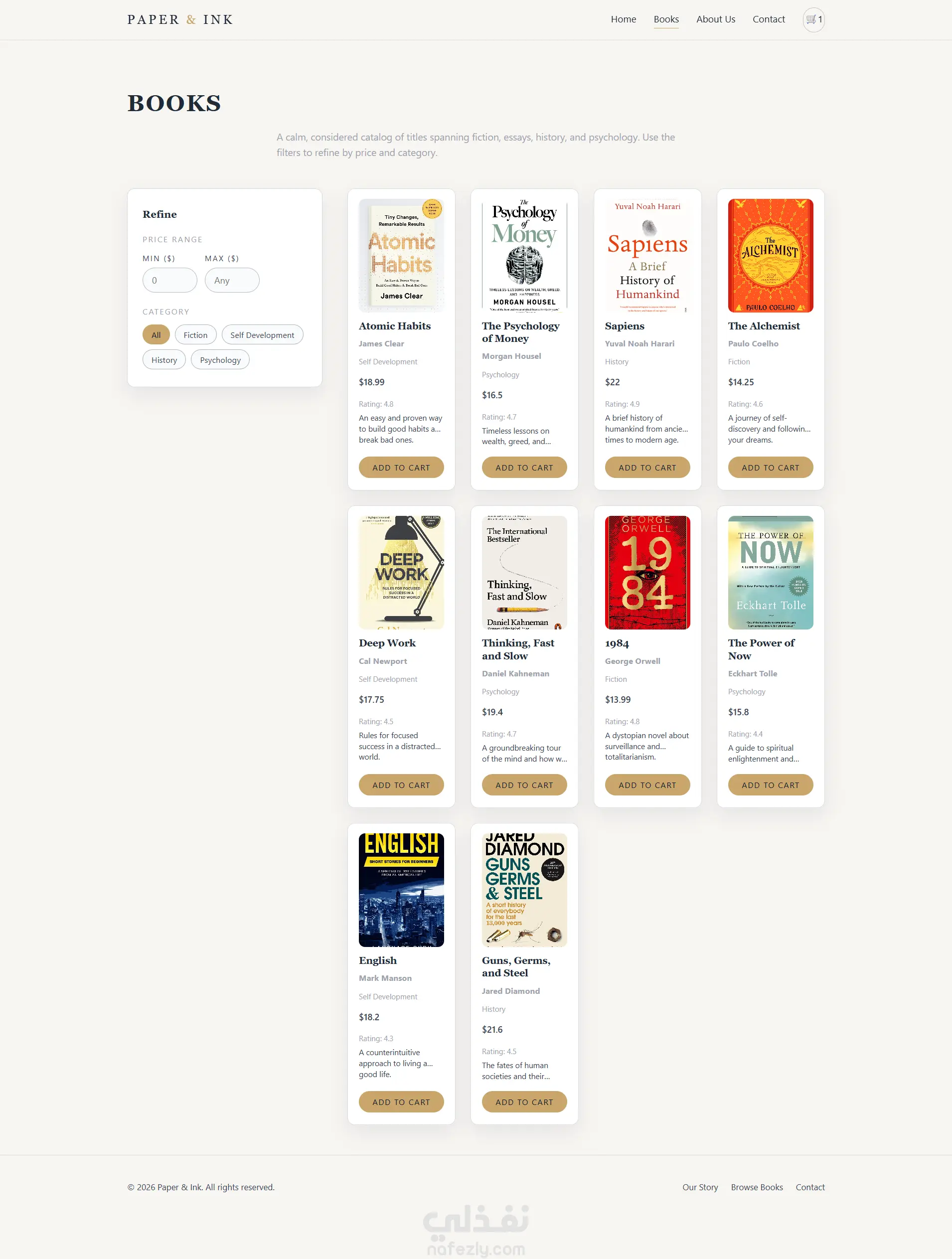 قمت بتصميم وتطوير موقع E-Commerce عصري ومتجاوب بالكامل، مع إمكانية تنفيذه بأكثر من تكنولوجي حسب احتياج مشروعك. يمكن تنفيذ المتجر باستخدام: HTML5 – CSS3 – Tailwind – JavaScript (موقع ثابت سريع وخفيف) React (واجهة ديناميكية حديثة) Node.js (Back-End احترافي لمعالجة البيانات) Next.js (أداء أعلى + SEO أقوى + Server Side Rendering) الموقع : ✔ متجاوب مع جميع الشاشات ✔ سريع الأداء ومحسن من ناحية تجربة المستخدم ✔ كود نظيف ومنظم وقابل للتطوير ✔ قابل للربط لاحقًا ببوابات الدفع وقواعد البيانات