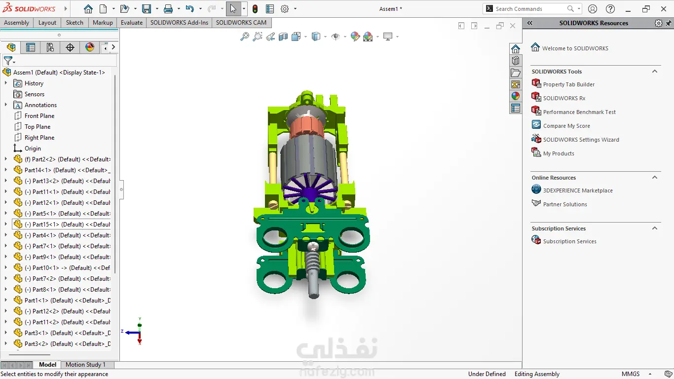 هذا المشروع يمثل محاكاة كاملة لتصميم محرك/جهاز حركي تم بناؤه من الصفر باستخدام SolidWorks. لم يكن التركيز فقط على الشكل الخارجي، بل على هندسة الأجزاء الداخلية لضمان التوافق الديناميكي الكامل بين المكونات. القيمة المضافة في هذا التصميم: إدارة التجميعات: بناء تجميعة تحتوي على أكثر من 15 جزءاً مختلفاً (Parts)، مع ضبط الـ Mates بدقة لضمان حرية الحركة الميكانيكية الصحيحة ومنع أي تداخل. الدقة في النمذجة : تصميم دقيق للمكونات الداخلية مثل الـ Rotor والـ Commutator والـ Housing، مع مراعاة خلوصات التجميع (Clearances) لضمان سهولة التركيب والصيانة. التصميم الموجه للتصنيع (DfM): كل جزء في هذه التجميعة مصمم ليكون قابلاً للإنتاج، سواء عبر القوالب للأجزاء البلاستيكية الخضراء، أو الخراطة للمعادن. تحليل المواد والألوان: استخدام الأكواد اللونية للتمييز بين الخامات المختلفة (النحاس، الصلب، البوليمرات)، مما يسهل عملية قراءة التصميم في مرحلة الإنتاج. المخرجات التقنية المتوفرة لهذا العمل: Exploded View: عرض تفصيلي لأجزاء التجميعة يوضح طريقة التركيب. Bill of Materials (BOM): قائمة كاملة بالأجزاء والمواد المطلوبة للإنتاج. Production Formats: ملفات جاهزة بصيغة (STEP, IGS, SLDASM) متوافقة مع جميع أنظمة التصنيع الحديثة. لماذا يمثل هذا العمل دليلاً على خبرتي؟ الصور توضح أنني لست مجرد "راسم"؛ بل مهندس يستطيع إدارة مشروع ميكانيكي كامل من القطع الفردية (Part level) وصولاً إلى المنتج النهائي الجاهز للعمل (System level).