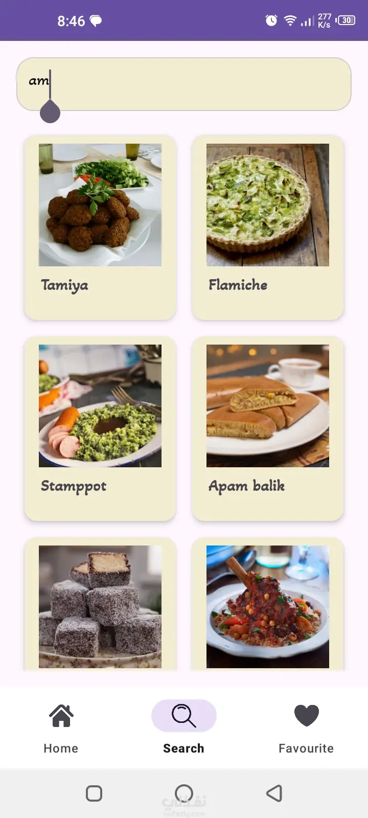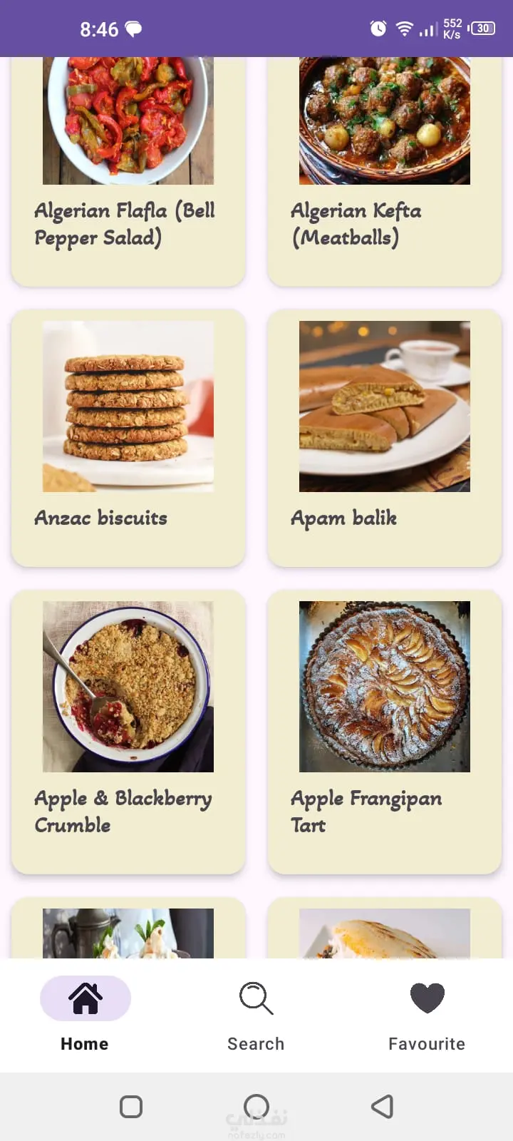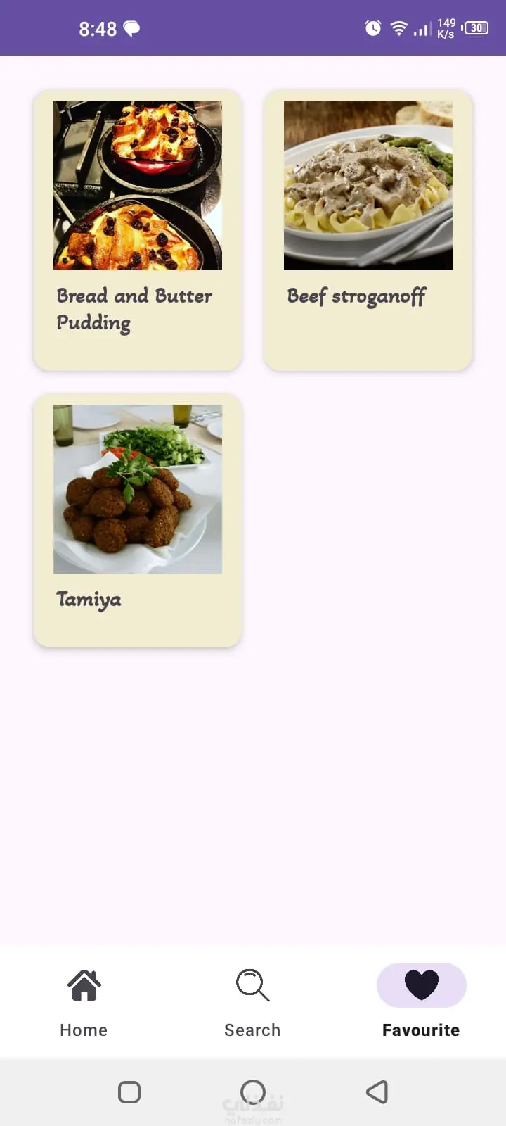 Recipe App – تطبيق وصفات طعام تطبيق أندرويد متكامل لعرض وصفات الطعام تم تطويره باستخدام Kotlin وAndroid Native، مع الاعتماد على API لجلب البيانات بشكل ديناميكي. أهم المميزات: عرض قائمة الوصفات داخل RecyclerView بصورة واسم مختصر شاشة تفاصيل تحتوي على صورة كاملة، المكونات، وطريقة التحضير خاصية البحث (Search) للوصول السريع للوصفات تصنيف الوصفات حسب الفئات (Categories) استخدام Navigation Component لإدارة التنقل بين الشاشات ربط البيانات باستخدام Retrofit تطبيق Data Binding لكتابة كود منظم وقابل للتطوير تصميم متجاوب يعمل بكفاءة على مختلف أحجام الشاشات التطبيق يركز على تجربة مستخدم سلسة، أداء سريع، وكود نظيف وفق أفضل ممارسات البرمجة
