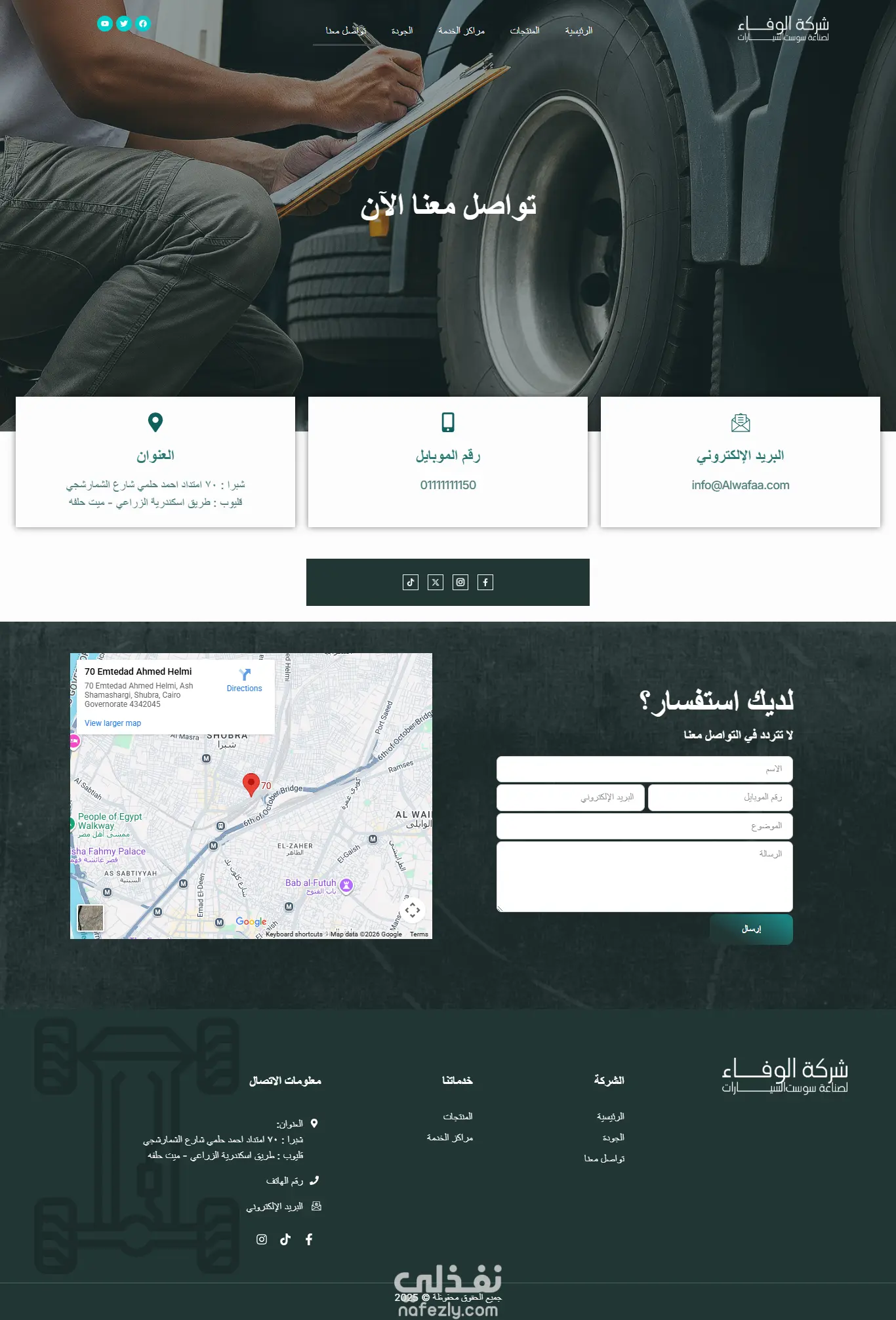 صميم وتطوير وردبريس موقع الوفاء لسوست السيارات