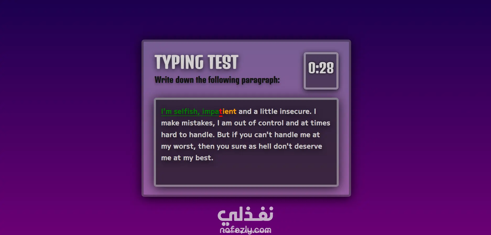 A frontend web app to examine your keyboard typing's accurecy and speed by generating random text. it's better to play the game on PC/Laptop Technologies: - HTML - CSS - Javascript - DOM events