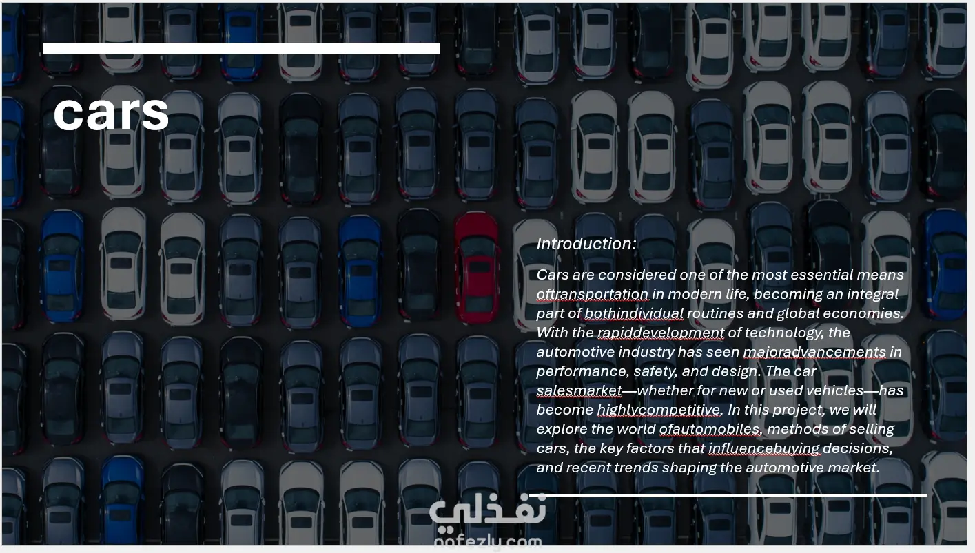 هل تحتاج إلى عرض تقديمي احترافي لعرض مشروعك أو فكرتك أو نتائج عملك بطريقة جذابة ومنظمة؟ أقدم لك خدمة تصميم عروض PowerPoint احترافية تناسب المشاريع، العروض الجامعية، خطط الأعمال، أو التقارير الإدارية. سأقوم بـ: تصميم شرائح منظمة وجذابة بصريًا تنسيق العناوين والنصوص بشكل احترافي إضافة أيقونات وصور داعمة للمحتوى تنظيم المعلومات لتكون واضحة وسهلة الفهم استخدام ألوان متناسقة تناسب طبيعة العرض تسليم ملف جاهز للتقديم أو التعديل أحرص على تقديم تصميم احترافي يساعدك على عرض فكرتك بثقة وتأثير قوي. تصميم جذاب تنسيق احترافي تنظيم واضح للمحتوى التزام كامل بالجودة والموعد الباقة الأساسية – 5$ تصميم عرض تقديمي حتى 10 شرائح تنسيق احترافي كامل إضافة أيقونات وصور مناسبة تنظيم المحتوى بشكل واضح تسليم خلال يومين