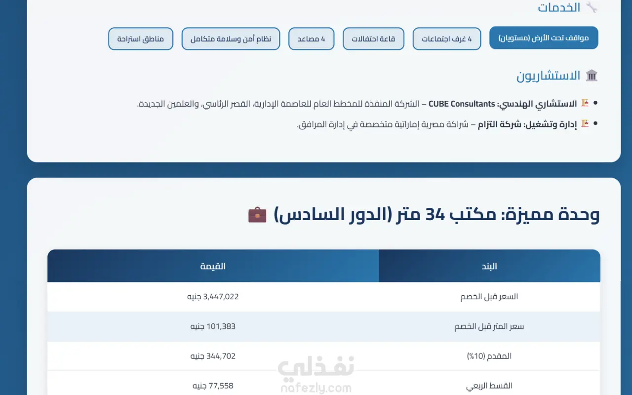 موقع لمستشاري عقارات يعرض معلومات عن شركات عقارية بشكل منظم وسهل يوضح الموقع الفرق بين كل شركة والثانية