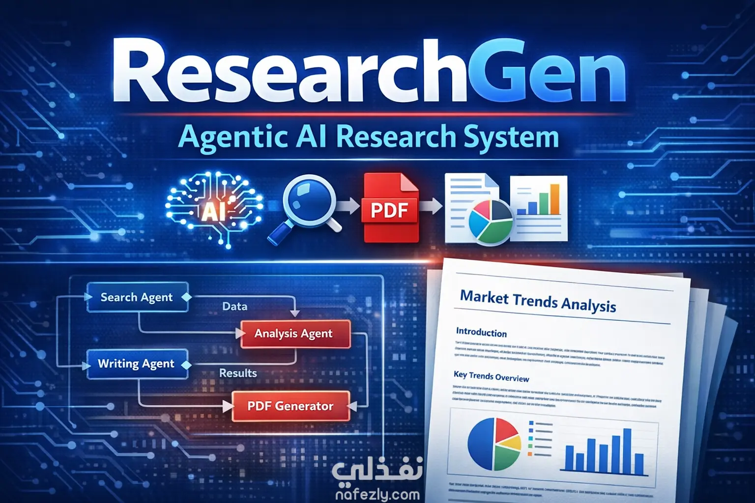 قمت بتطوير نظام ذكي قائم على Agentic AI باسم ResearchGen لأتمتة عملية البحث وإعداد التقارير الاحترافية بصيغة PDF بشكل كامل.