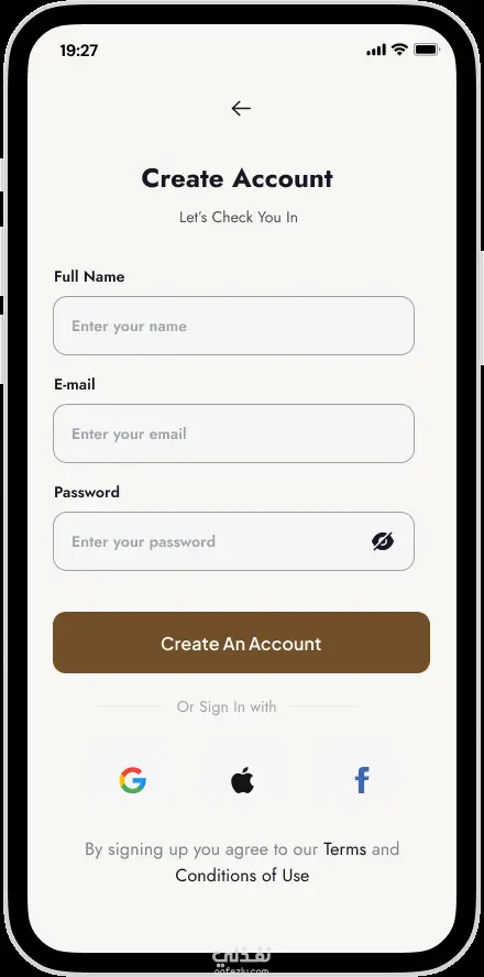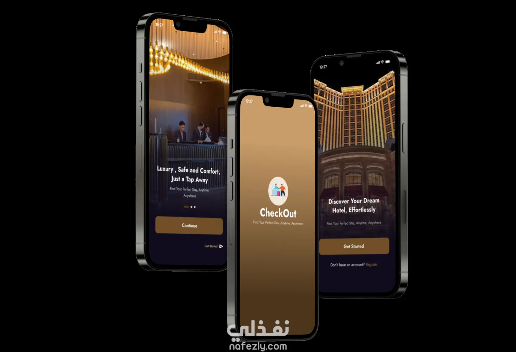 صممت واجهه ابلكيشن حجز فنادق بالصفحه الرئيسيه وتسجيل الدخول وانشاء حساب