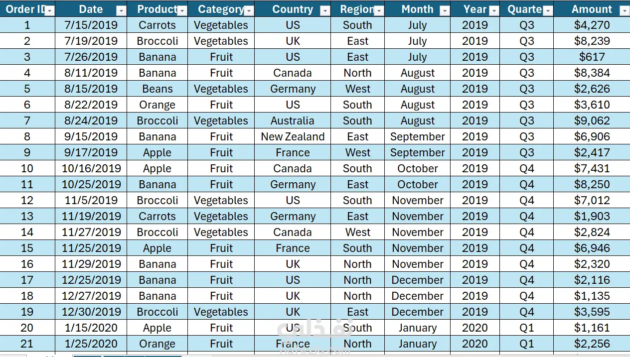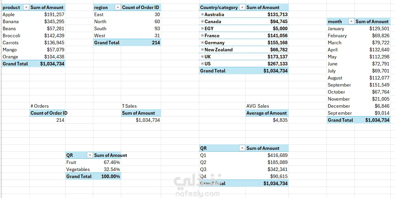 يركّز هذا المشروع على تحليل بيانات مبيعات الأغذية لاكتشاف أهم الاتجاهات التجارية ومؤشرات الأداء الرئيسية. من خلال تحويل بيانات المعاملات الخام إلى لوحة معلومات ديناميكية تفاعلية، تم تقديم رؤية واضحة لنمو الإيرادات، وهيمنة بعض المناطق، والطلب على المنتجات. مؤشرات الأداء الرئيسية (KPIs): إجمالي الإيرادات: 1,034,734 دولار إجمالي الطلبات: 214 متوسط قيمة الطلب: 4,835 دولار الفئة الأعلى مبيعًا: الفواكه (67.5% من إجمالي المبيعات) السوق الأعلى أداءً: الولايات المتحدة (267,133 دولار) اتجاهات المبيعات: مخطط خطي لتحليل الإيرادات الشهرية، يوضح ذروة المبيعات في شهر سبتمبر (151,549 دولار). أداء المنتجات: مخطط أعمدة يوضح أن منتج "الموز" هو الأعلى تحقيقًا للإيرادات (345,295 دولار). تحليل المناطق: مخطط دائري يوضح أن منطقة "الجنوب" تتصدر بعدد الطلبات (93 طلبًا). التحليل الربعي: مخطط شريطي أفقي يوضح أن الربع الأول (Q1) هو الأقوى من حيث المبيعات (416,689 دولار). التصفية الديناميكية: تم دمج أدوات Slicers لتصفية البيانات حسب السنة، والفئة، والمنتج، والدولة، والربع، مما يسمح بتحليل تفاعلي متعمق. الأدوات التقنية المستخدمة تنظيف البيانات: تنظيم وتهيئة بيانات CSV/Excel الخام لضمان الدقة. الجداول المحورية (Pivot Tables): لتجميع وتلخيص البيانات الكبيرة بكفاءة. التصور البياني (Data Visualization): إنشاء مخططات مخصصة وتصميم واجهة عرض متكاملة. أدوات التصفية التفاعلية (Slicers): لتمكين استكشاف البيانات في الوقت الفعلي. القيمة التجارية للمشروع: تمكّن لوحة المعلومات أصحاب القرار من تحديد المناطق والمنتجات الأعلى أداءً بسرعة، مما يساعد في تحسين إدارة المخزون، ووضع استراتيجيات تسويقية موجهة بناءً على الاتجاهات الموسمية للمبيعات.