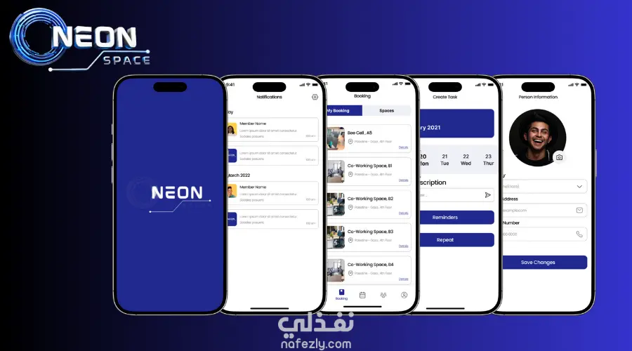 NEON Space – تطبيق حجز مساحات العمل (Workspace Booking App)