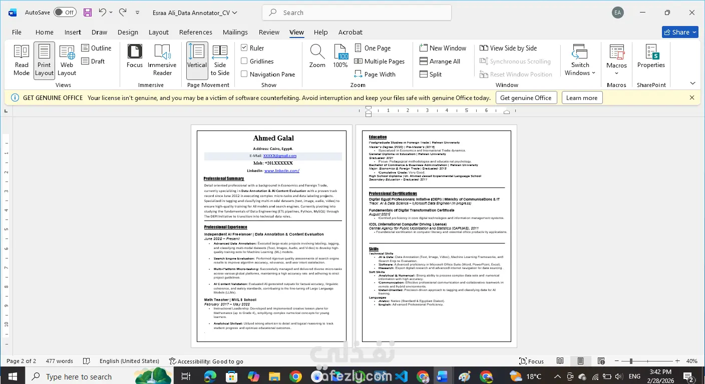 سيرة ذاتية (CV/ Resume) احترافية ومتوافقة مع معايير ATS