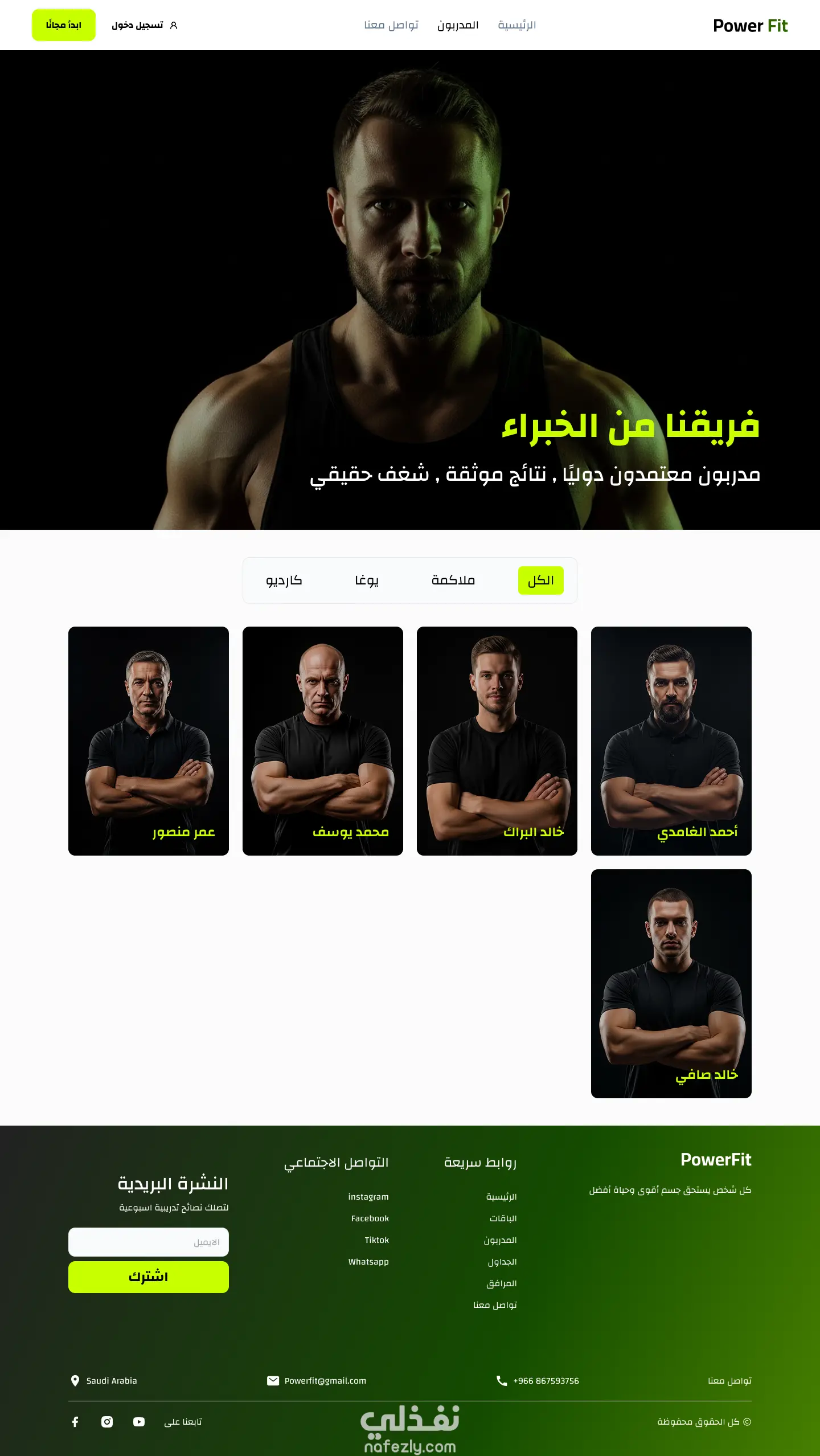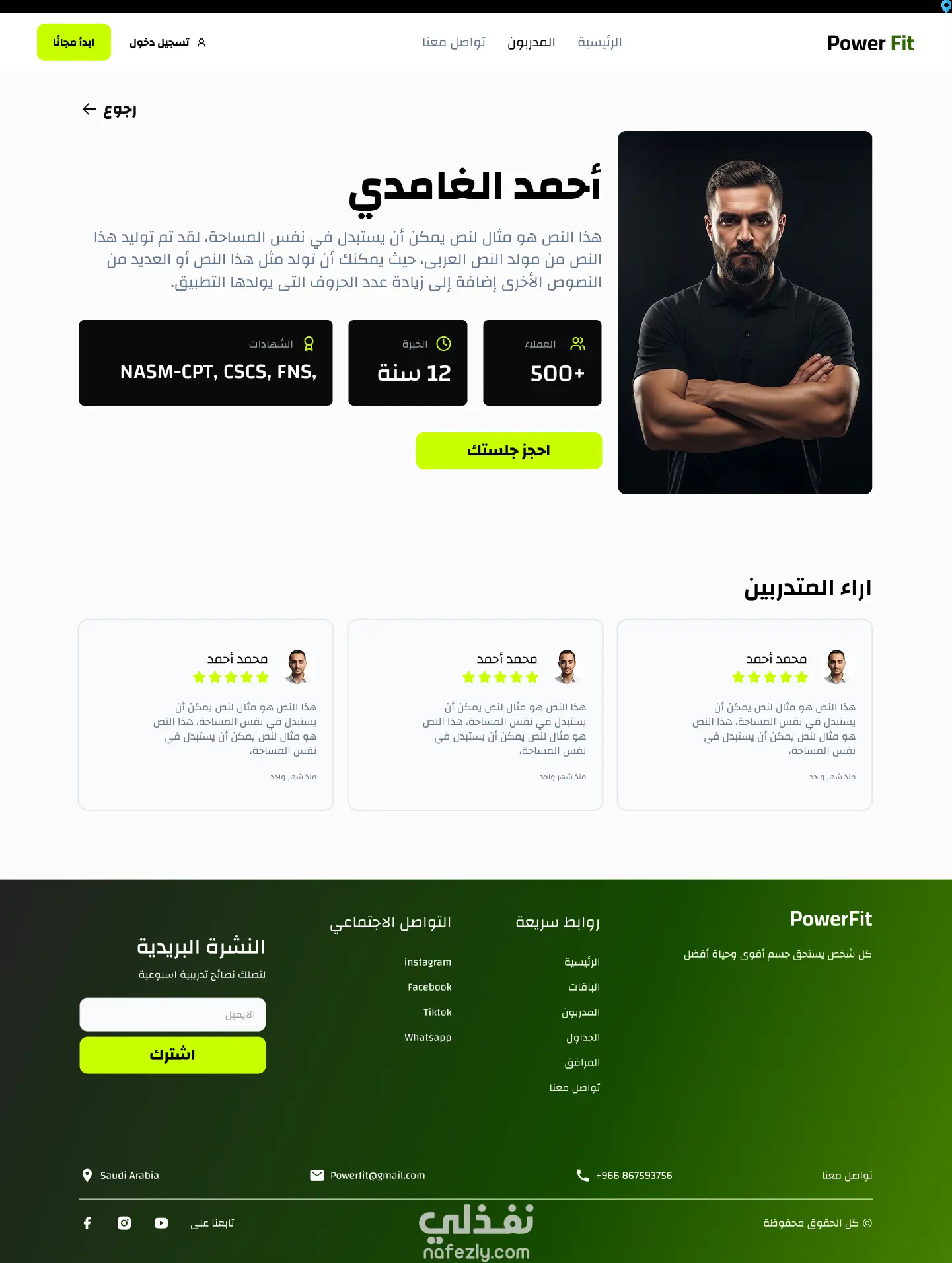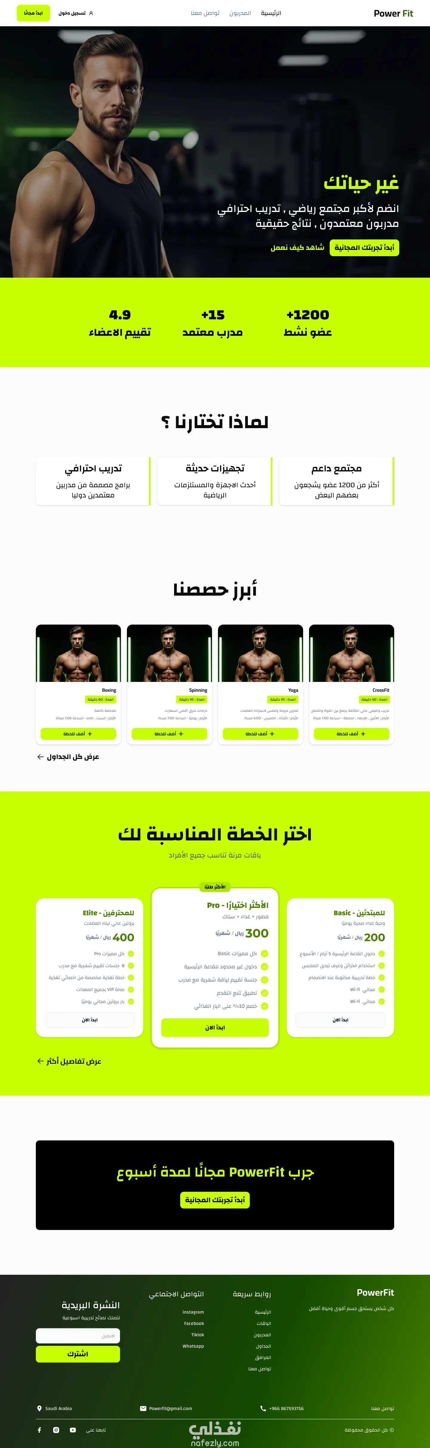 تصميم موقع خاص بنادي رياضي , عرض ابرز الباقات والحصص المتوفرة مع امكانية الحجز مع مدربين