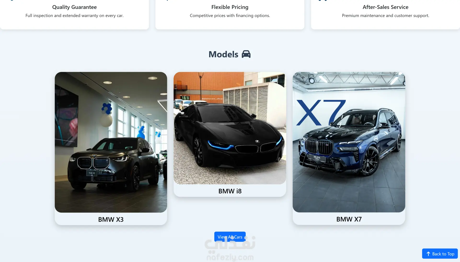 المشروع يعكس قدرتي على بناء مواقع عرض منتجات باحترافية، مع التركيز على التصميم الجذاب وسهولة التصفح، مما يجعله مناسبًا لشركات السيارات أو أي نشاط تجاري يحتاج إلى عرض منتجاته بشكل مميز.