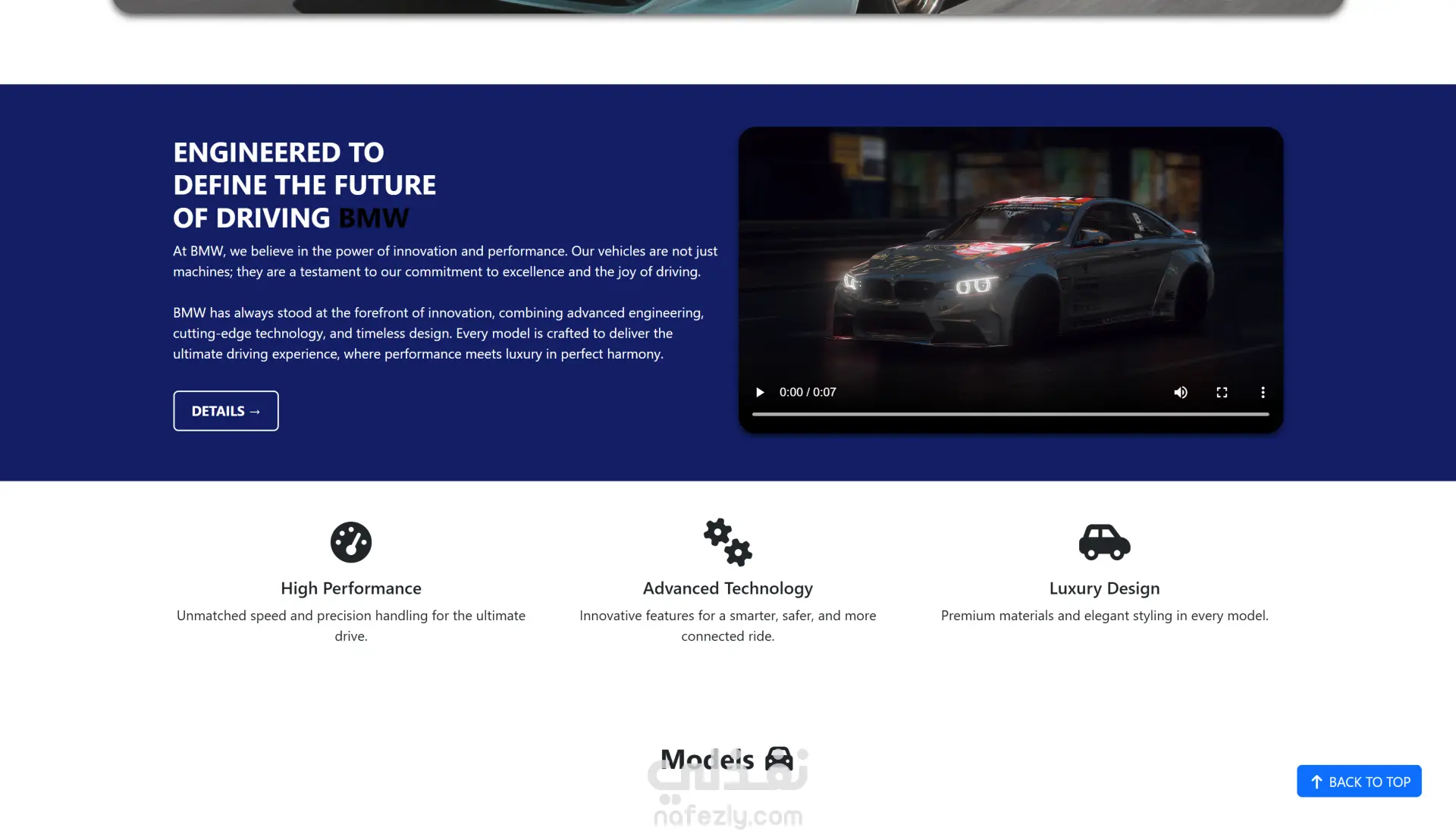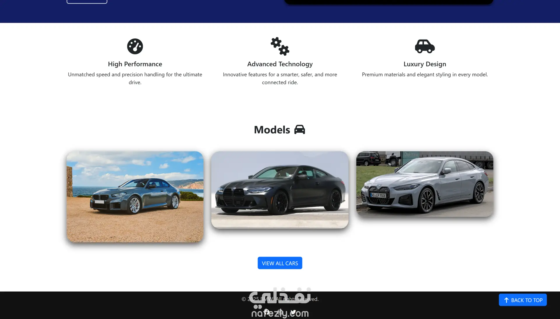 قمت بتطوير موقع ويب احترافي لعرض سيارات BMW باستخدام HTML و CSS و JavaScript مع إطار العمل Bootstrap، بهدف إنشاء منصة عصرية لعرض السيارات بطريقة جذابة وسهلة الاستخدام.