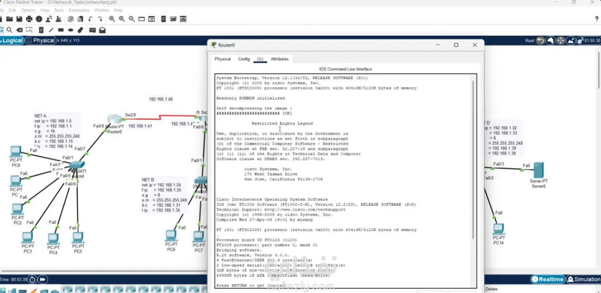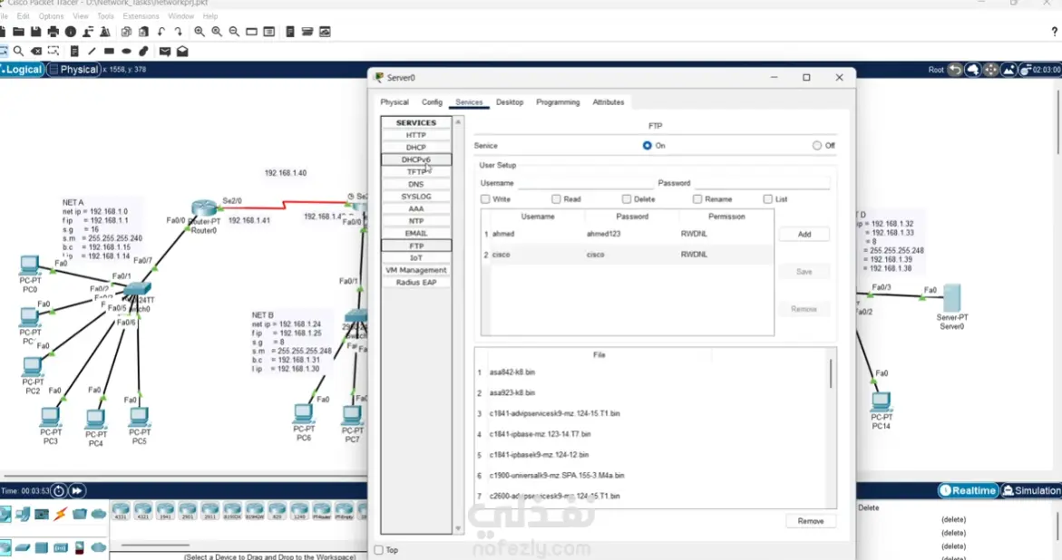 صممت ونفذت شبكة متكاملة باستخدام أداة Cisco Packet Tracer. المشروع بيحاكي بيئة عمل حقيقية، وشمل إعداد الـ Routers والـ Switches، وعمل Subnetting وتوزيع الـ IP Addresses بشكل احترافي، مع التأكد من جودة الاتصال وتأمين البيانات داخل الشبكة