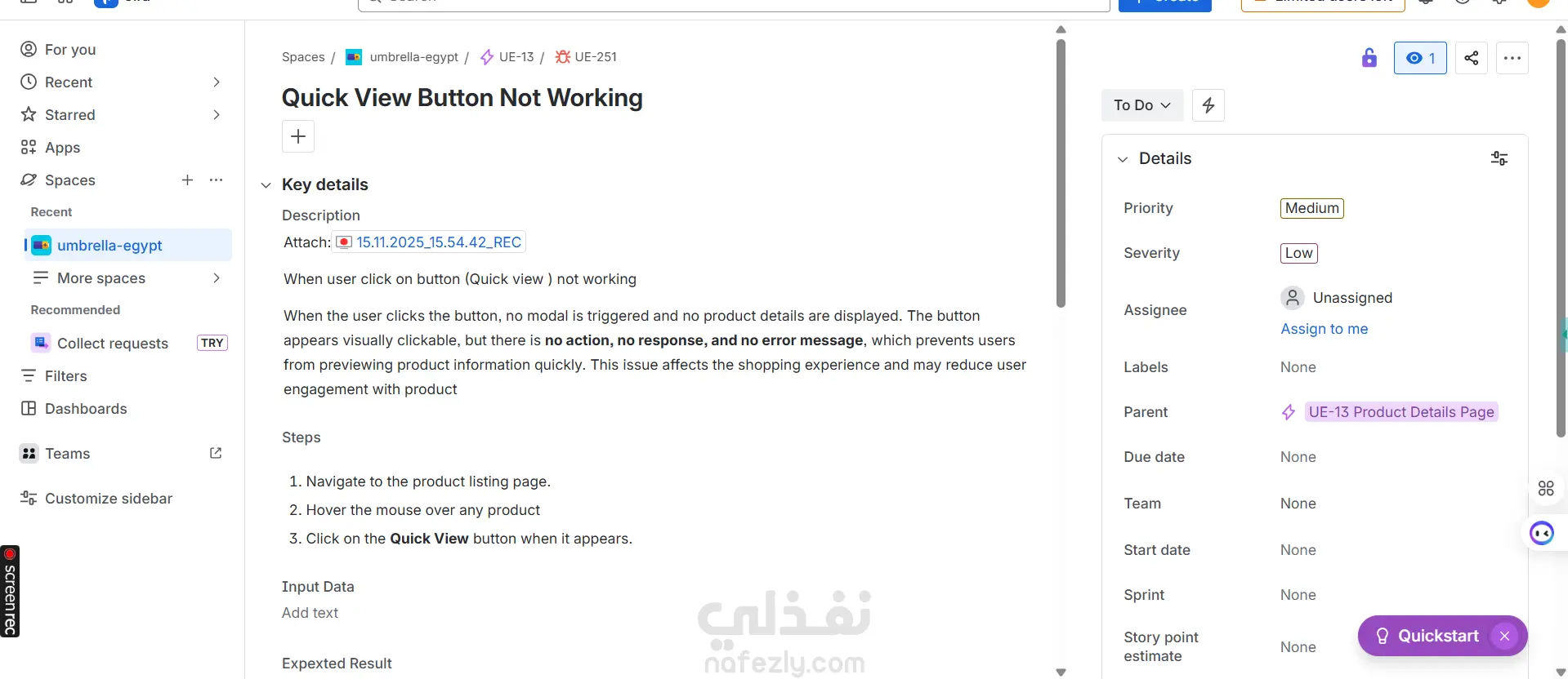 توثيق وتتبع الأخطاء باستخدام Jira مع إعداد Bug Reports واضحة واحترافية تشمل: