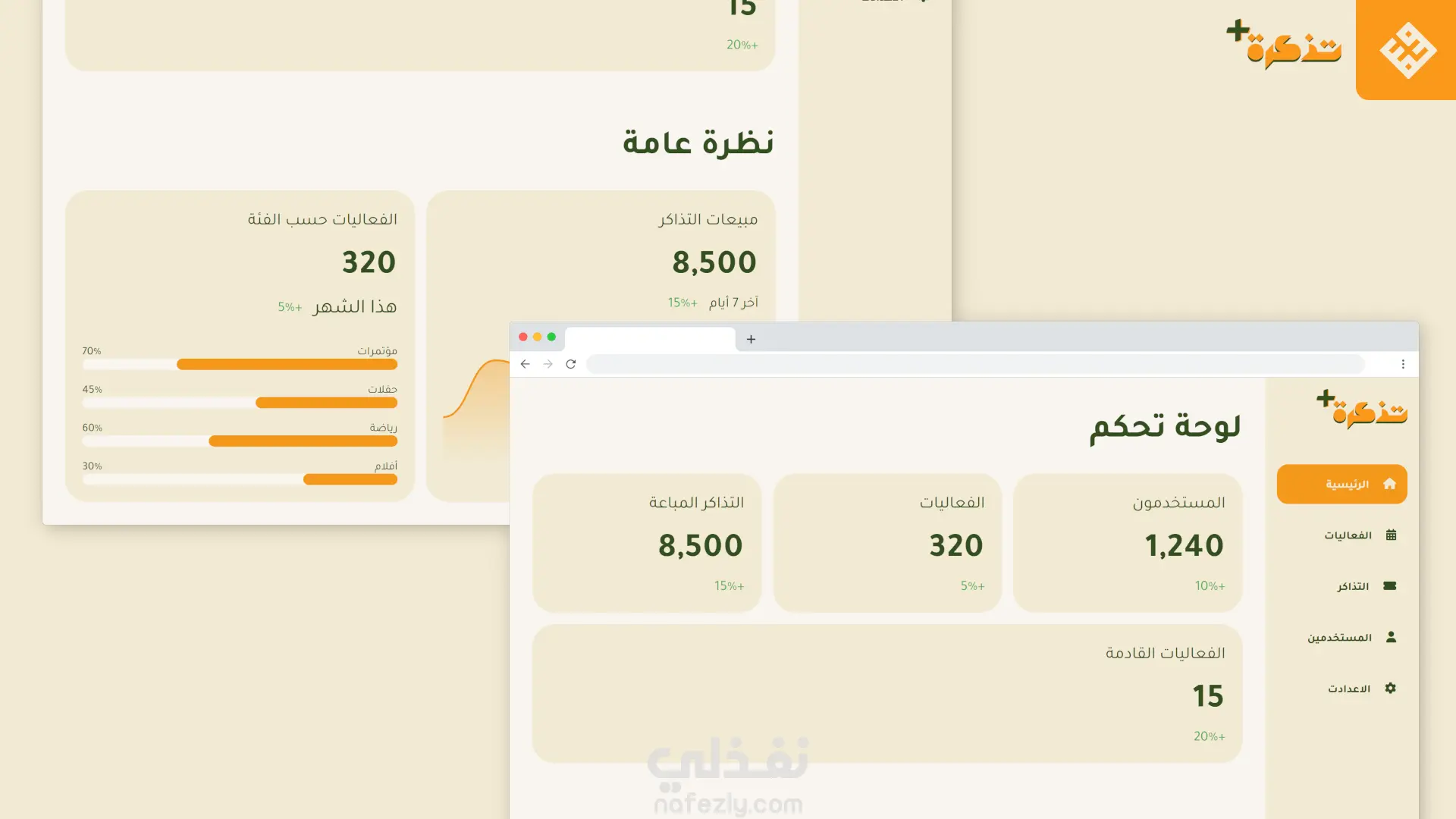 ❔ ماهو تذكرة+: هو نظام متكامل لإدارة الفعاليات ✨، صُمم لتقديم تجربة سلسة وتفاعلية لكل من المستخدمين والإدارة. يمكن للمستخدمين عرض الفعاليات المتاحة، الاطلاع على تفاصيل كل فعالية، حجز التذاكر، وإدارة حجوزاتهم الشخصية 🎫. بينما توفر لوحة التحكم للإدارة إمكانية إنشاء، تعديل، وحذف الفعاليات 📝، توليد التذاكر، إدارة المستخدمين 👤، والتحكم في إعدادات النظام العامة. يحتوي النظام على جداول متعددة مثل Users, Activities, Tickets، مما يوفر بنية قوية لإدارة الفعاليات بطريقة قابلة للتوسع. 🛠️ التقنيات المستخدمة: Node.js, Express.js, MongoDB, Mongoose, HTML, CSS, JavaScript, Bootstrap 🚀 التطوير المستقبلي قد يشمل: نظام إشعارات للمستخدمين، صلاحيات متقدمة حسب الدور، تصنيفات للفعاليات، وتحسين واجهة المستخدم للوحة التحكم.