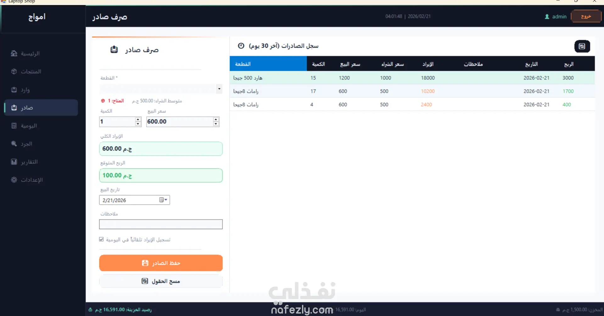 برنامج إدارة المخزون والجرد الاحترافي ليس مجرد نظام لتسجيل البيانات، بل هو شريك ذكي لإدارة تجارتك واتخاذ قرارات مالية دقيقة. يعمل كـ«محاسب إلكتروني ومراقب مخازن» في آنٍ واحد، حيث يحسب متوسط تكلفة الشراء تلقائيًا ليمنع البيع بالخسارة، ويراقب المخزون فعليًا لاكتشاف أي عجز أو تلاعب وتحويله لتقارير خسائر واضحة. يوفّر نظام خزينة متكامل يربط المبيعات والمشتريات والمصروفات لحظة بلحظة، فتقدر تعرف سيولتك الحالية بدقة وتفصل بين رأس المال ومصاريف التشغيل. بضغطة زر تحصل على تقرير صافي الأرباح الحقيقي بعد خصم كل التكاليف، مع عرض قيمة المخزون الفعلية. كما ينبهك عند اقتراب نفاد أي صنف حتى لا تخسر أي عملية بيع