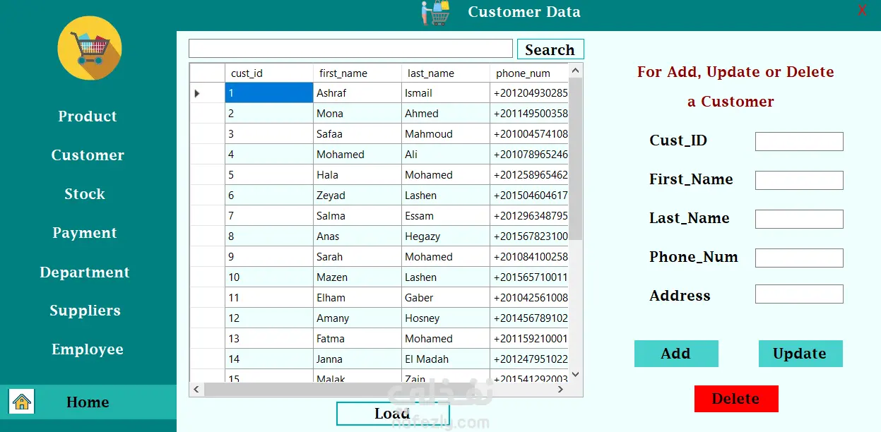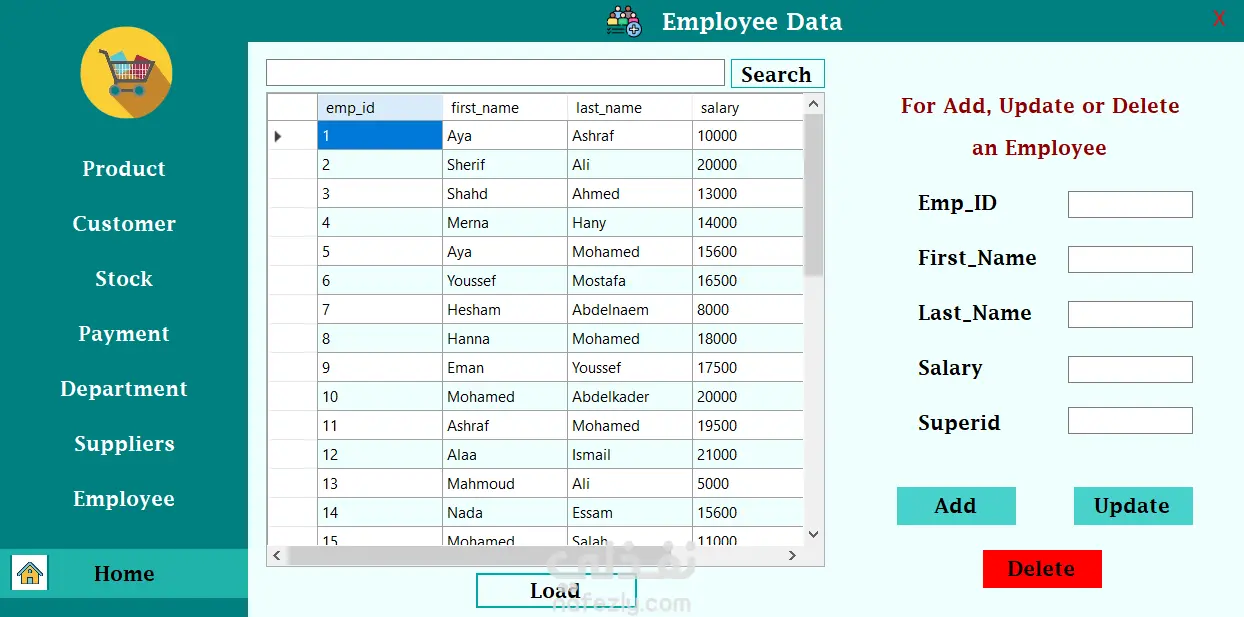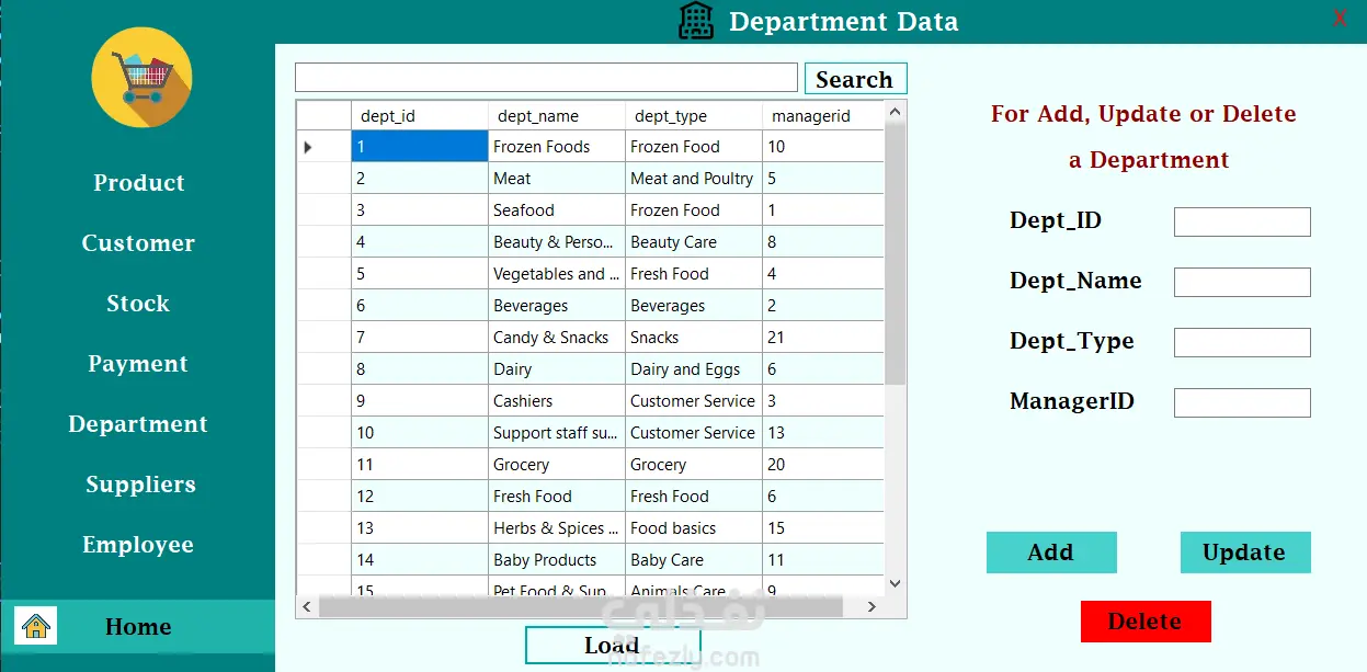 This project is a desktop supermarket management system developed using C# and Windows Forms in Visual Studio, with database integration. The application is designed to manage supermarket operations through a graphical user interface (GUI), allowing easy control of products, customers, stock, and sales data. Technologies Used: - C# programming language - Windows Forms (WinForms) - Visual Studio - Database for data storage and management Project Features: - Product management (add, update, delete products) - Customer and supplier management - Stock and inventory tracking - Payment and billing management - Employee and department management - Database connectivity for storing and retrieving data - User-friendly graphical interface The project demonstrates skills in desktop application development, database integration, and building structured management systems using C#.
