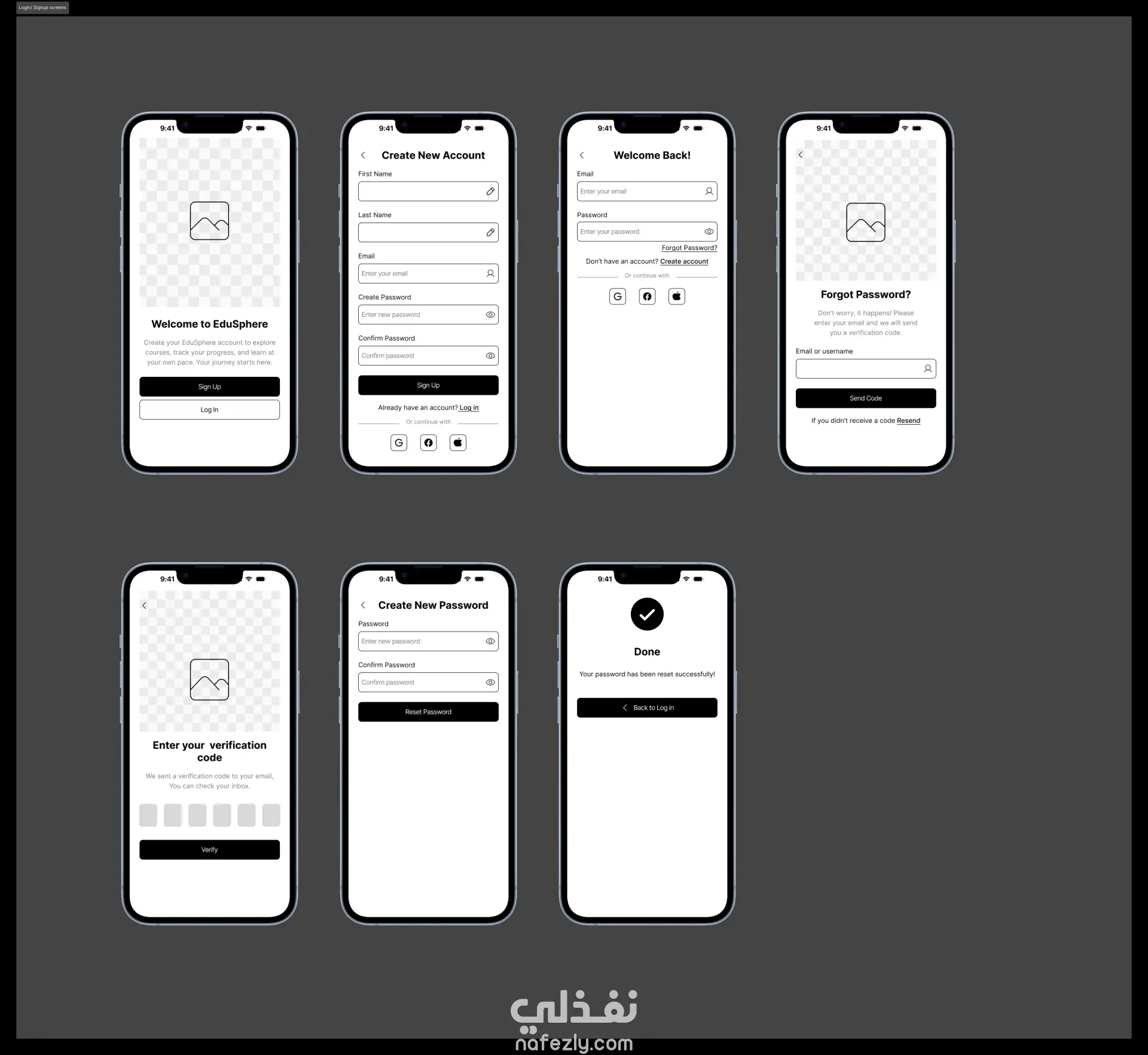 يركّز هذا المشروع على تصميم وايرفريمز لشاشات تسجيل الدخول وإنشاء حساب جديد لتطبيق EduSphere التعليمي، بهدف تبسيط رحلة المستخدم منذ أول تفاعل مع التطبيق.