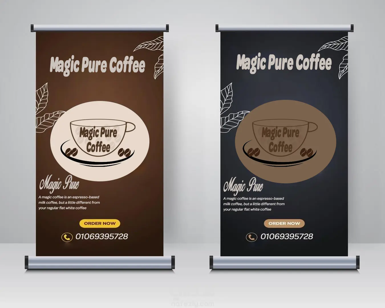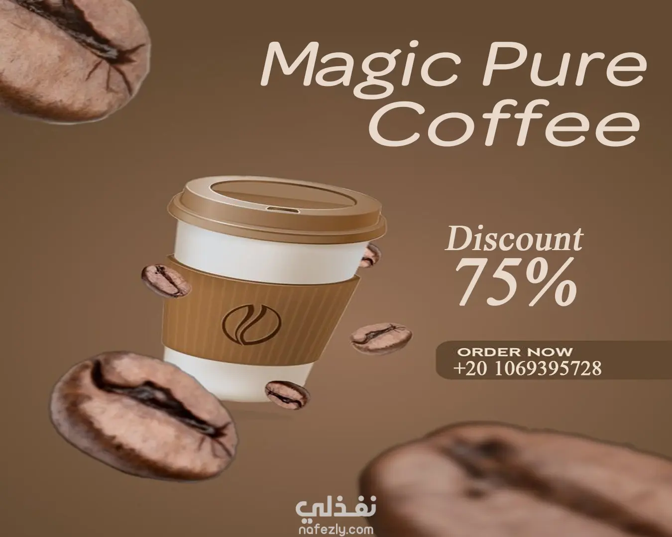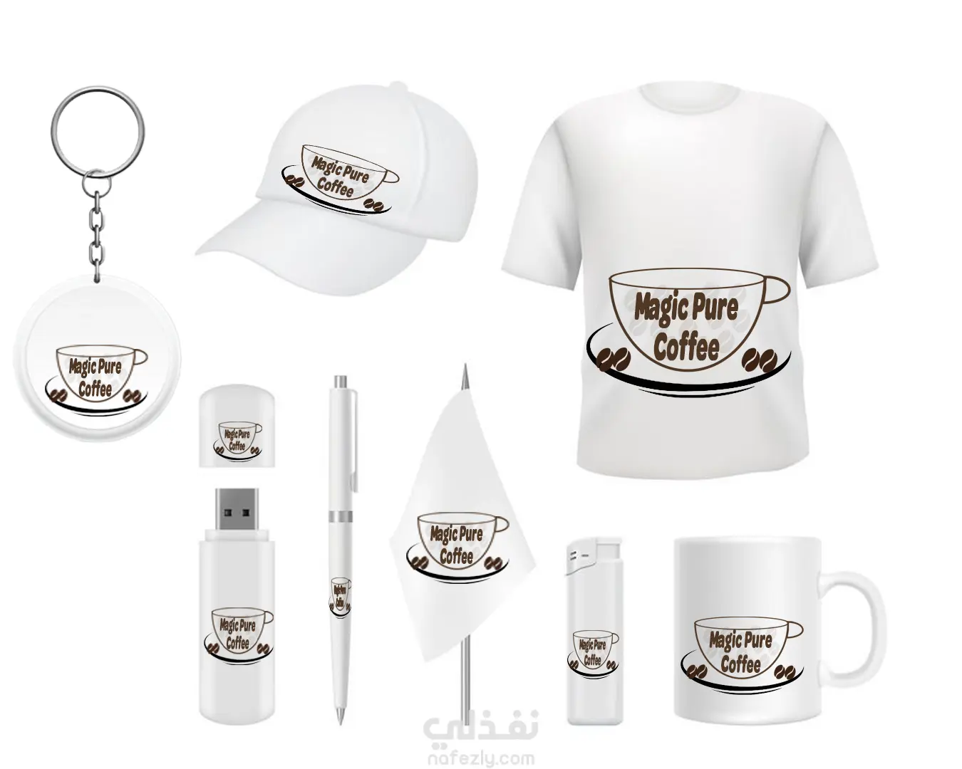 تصميم هوية بصرية متكاملة لمشروب Magic Pure Coffee تشمل: