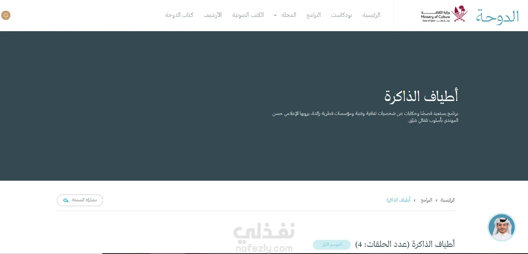 كتابة سكربت برنامج أطياف الذاكرة لمنصة الدوحة الثقافية.