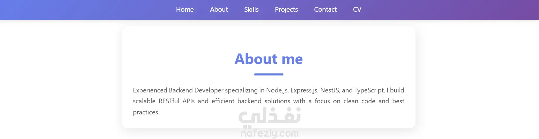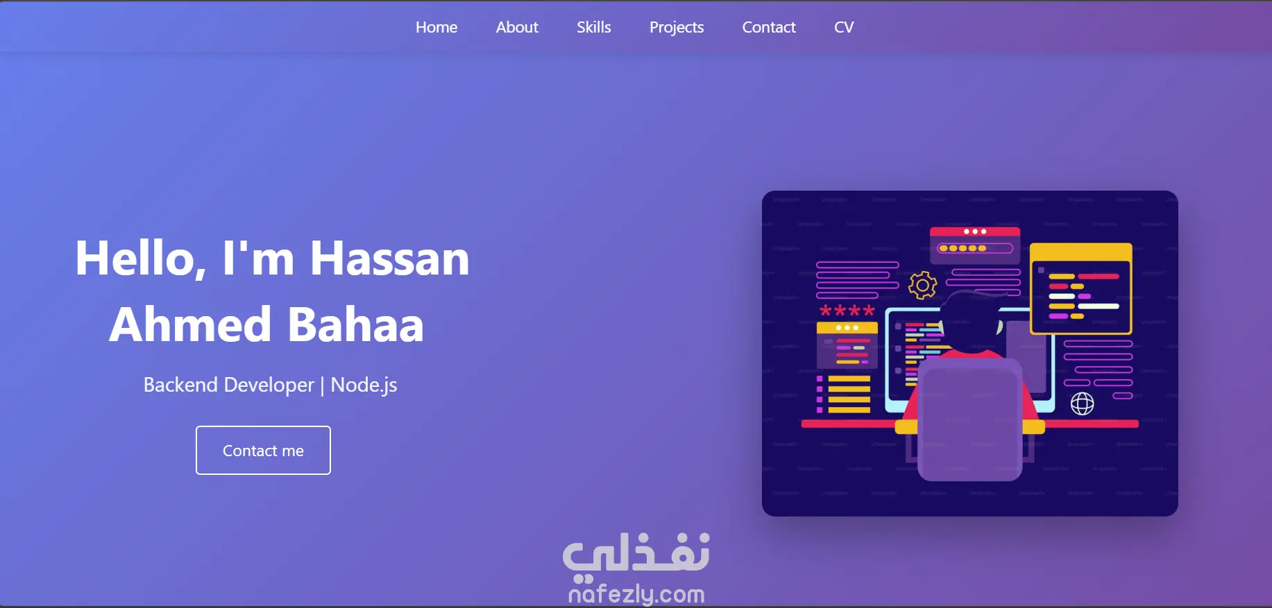 My Portfolio Website هو موقع ويب شخصي بسيط ومتجاوب يتيح عرض معلوماتي المهنية ومهاراتي التقنية ومشاريعي بشكل منظم وواضح. الموقع مبني كليًا باستخدام تقنيات الواجهة الأمامية فقط، ولا يتطلب أي Backend أو إعدادات تشغيل إضافية. يعتمد المشروع على تنظيم هيكل الصفحات وتنسيق العناصر باستخدام أفضل ممارسات HTML وCSS، مع التركيز على وضوح المحتوى وسهولة التصفح وتجربة المستخدم السلسة، مما يضمن سهولة في الصيانة والتطوير مستقبلًا. مميزات التطبيق: واجهة احترافية لعرض المعلومات الشخصية والمهنية شريط تنقل ثابت (Sticky Navbar) مع تنقل سلس بين الأقسام عرض المهارات التقنية في شكل بطاقات تفاعلية قسم مخصص للمشاريع مع رابط مباشر إلى GitHub تصميم متجاوب يعمل على مختلف أحجام الشاشات تأثيرات Hover وانتقالات سلسة لتحسين تجربة المستخدم مشروع Static لا يحتاج إلى Server أو Build Tools التقنيات المستخدمة: HTML5 CSS3 Responsive Design (Media Queries) Vanilla JavaScript (للتفاعلات البسيطة