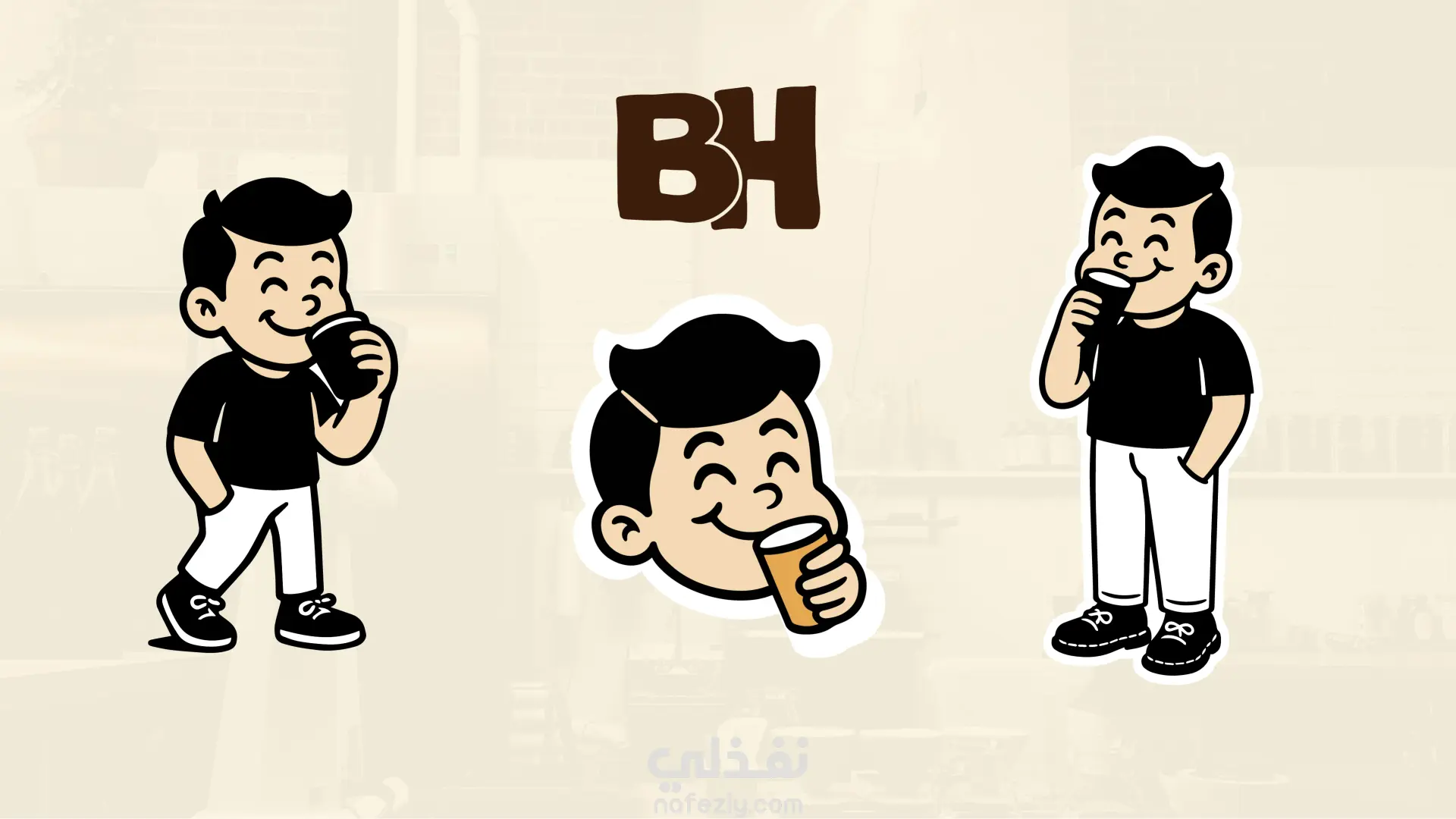 شخصية كرتونية مبتسمة تستمتع بالقهوة لتعزيز التواصل العاطفي مع الجمهور