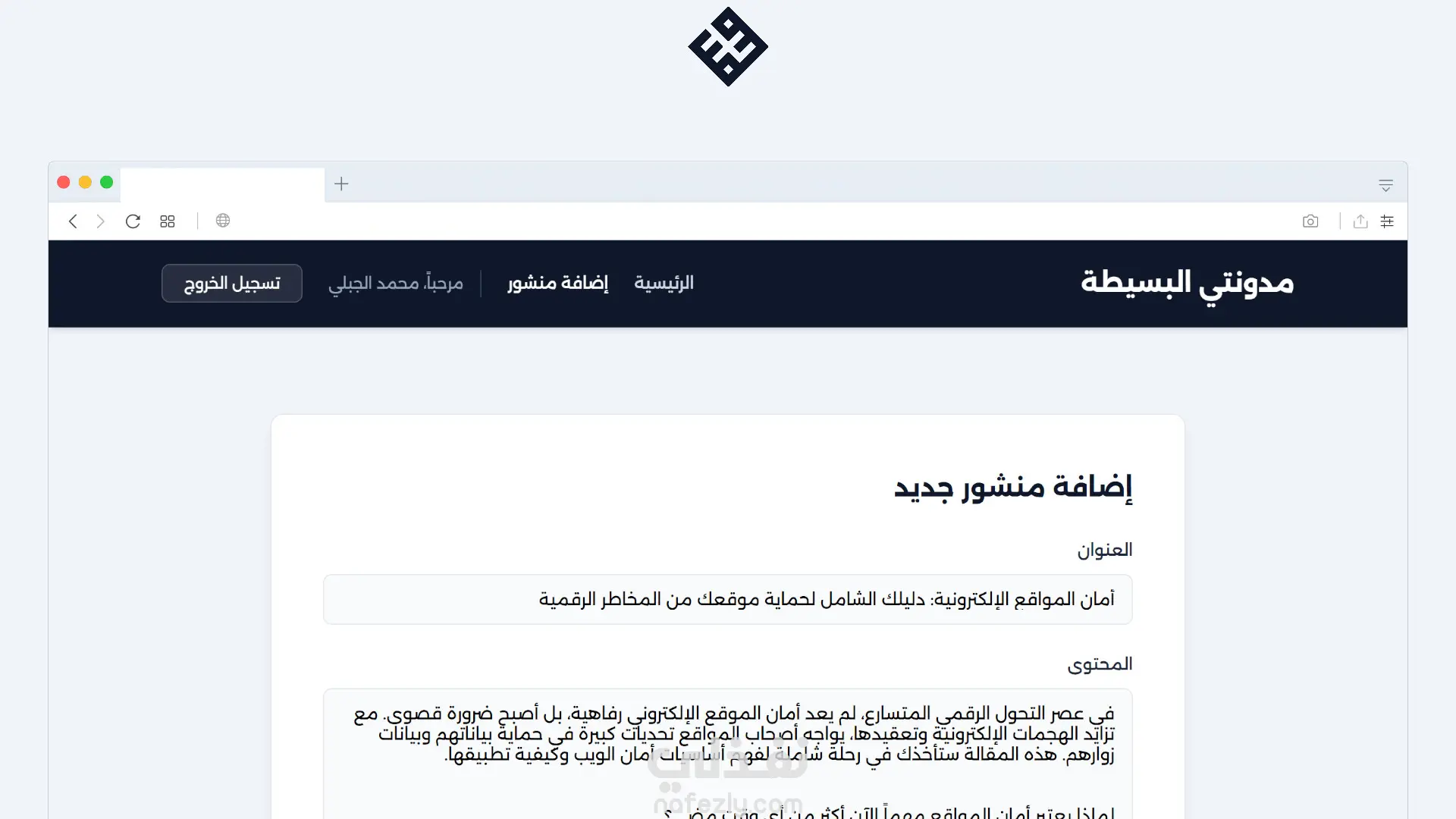 مدونتي البسيطة | تطبيق ويب لإدارة المدونات