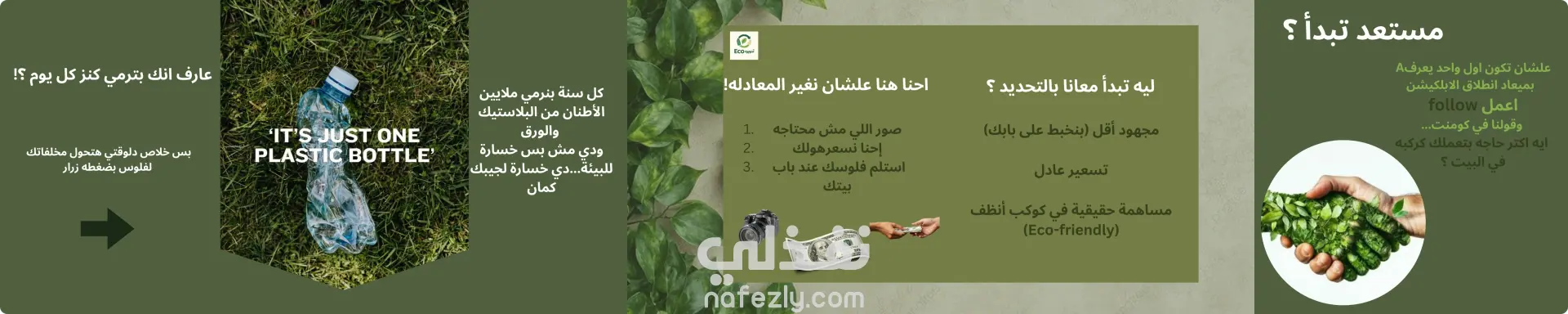 التصميم البصري التوضيحي: استخدام الهوية اللونية الخضراء لتعزيز مفهوم الحفاظ على البيئة (Eco-friendly) مع دمج صور توضيحية لخطوات عمل التطبيق.