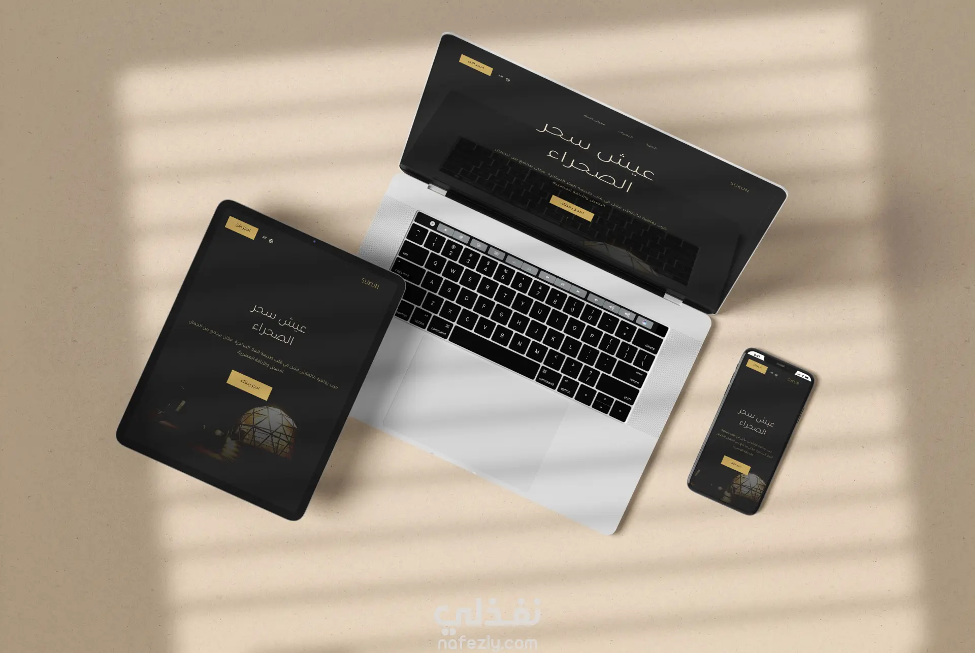 تصميم صفحة هبوط (Landing Page) لتجربة تخييم سياحي فاخر في السعودية (سُكون)