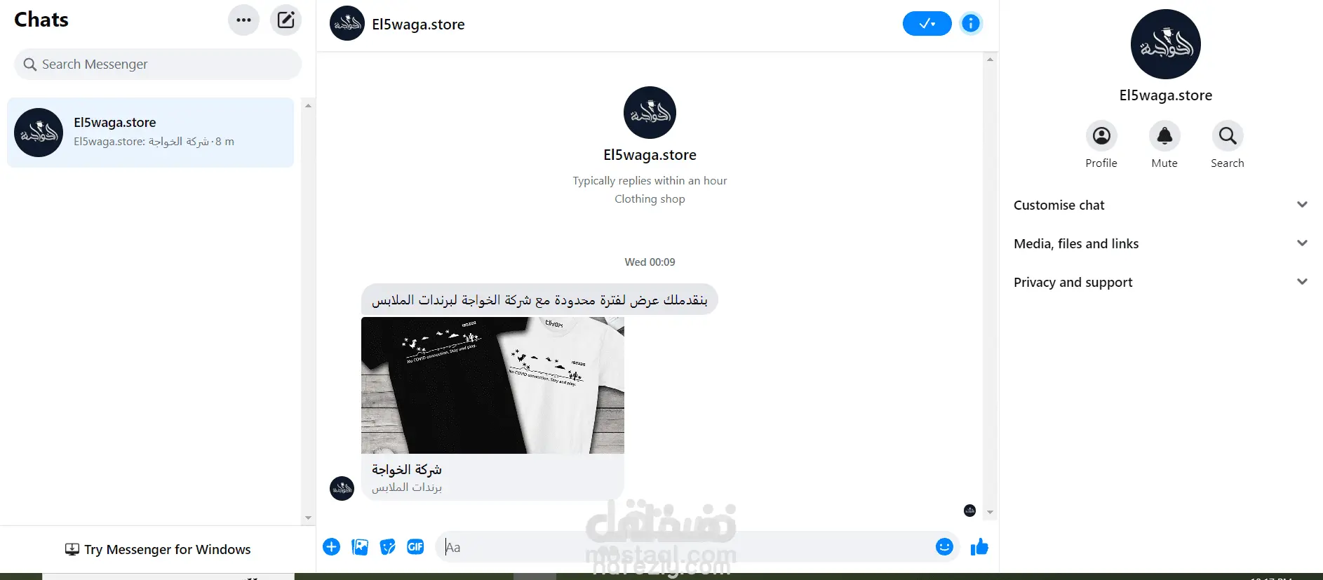 ادارة صحفة الخواجة استور للملابس الجاهزة علي الفيس بوك وكتابة content محتوي لها