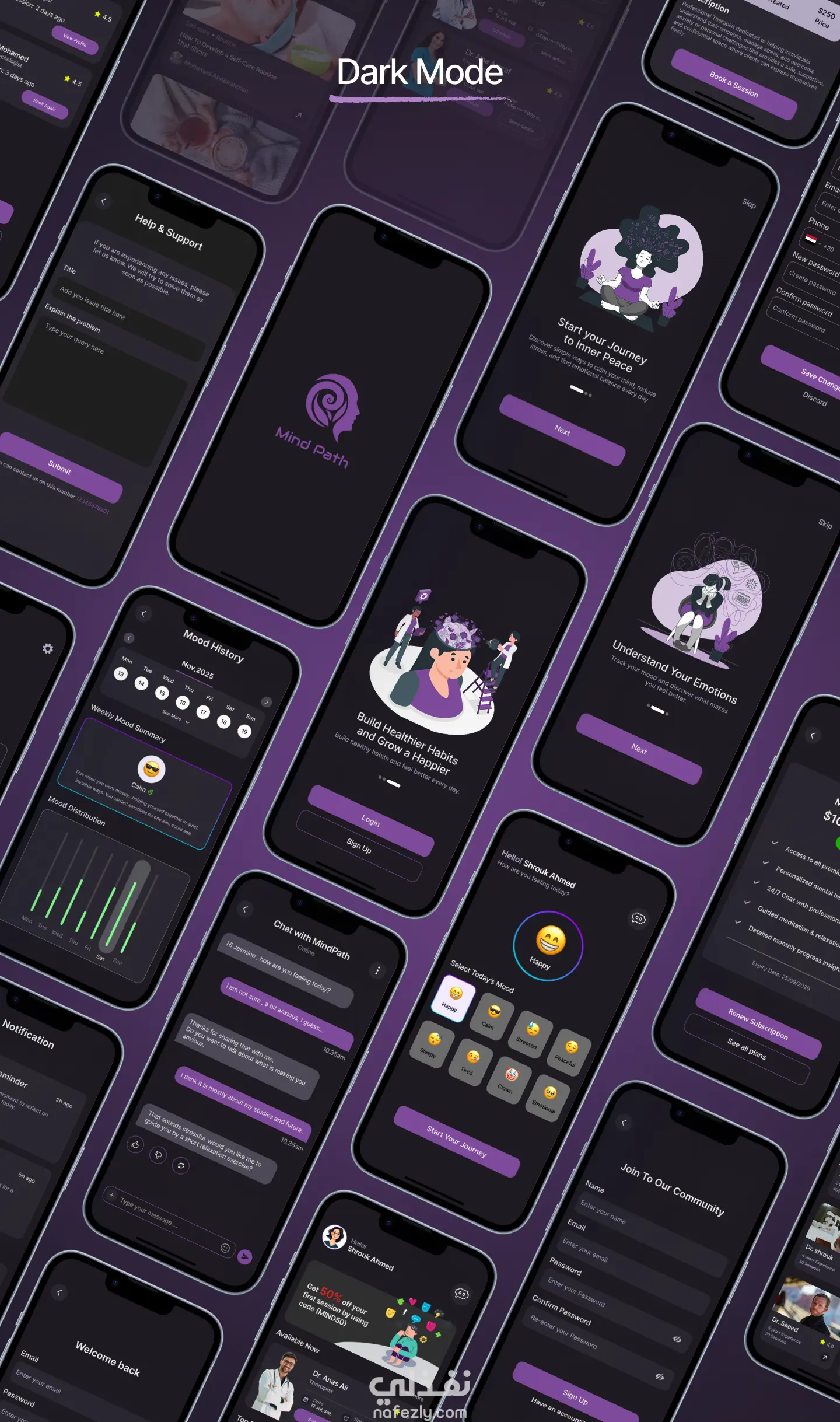 تطبيق للصحة النفسية مخصص للطلاب بيقدم مساحة آمنة وخاصة تساعدهم يتابعوا حالتهم المزاجية يوميًا ويكتشفوا أنماط مشاعرهم من غير خوف من المجتمع
