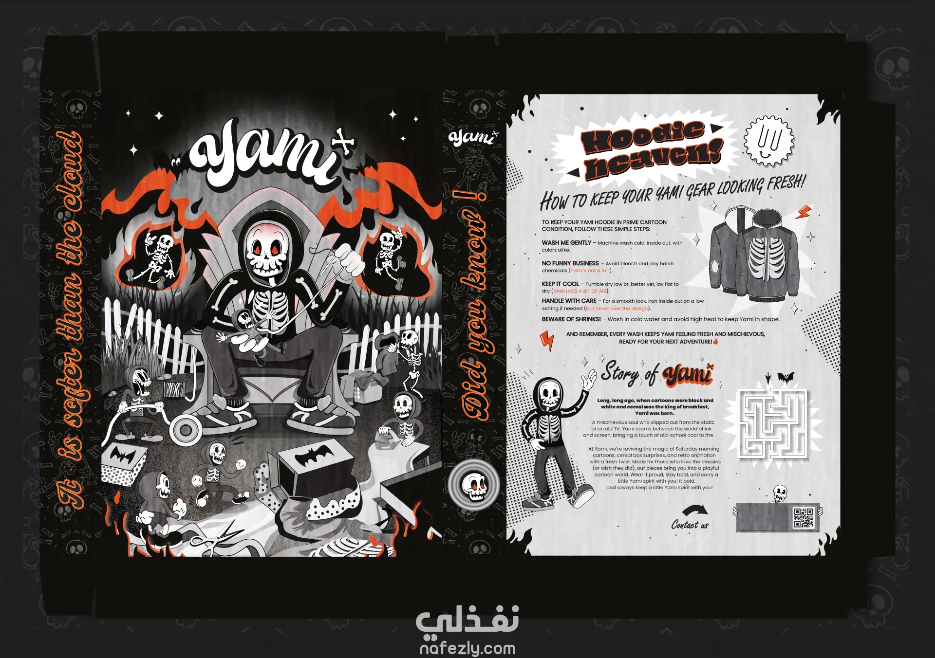عملت على تصميم هوية بصرية وإلستريشن لبراند ملابس شبابية باسم “Yami”، يعتمد على تصميم Hoodies مستوحاة من الكرتون القديم بأسلوب Retro ممتع. ركزت في المشروع على خلق شخصية واضحة للبراند وتقديم تصاميم جذابة جاهزة للطباعة، تعكس هوية فريدة وتناسب الفئة المستهدفة من الشباب. دوري في المشروع: -ابتكار الفكرة البصرية للبراند -تصميم عناصر الشخصيات والإلستريشن المستوحاة من كرتون Retro -تطوير ستايل فني ثابت يظهر على التصاميم -إعداد التصميمات النهائية للطباعة بجودة عالية