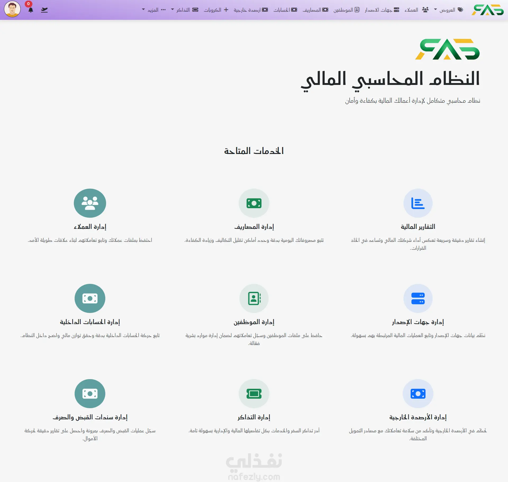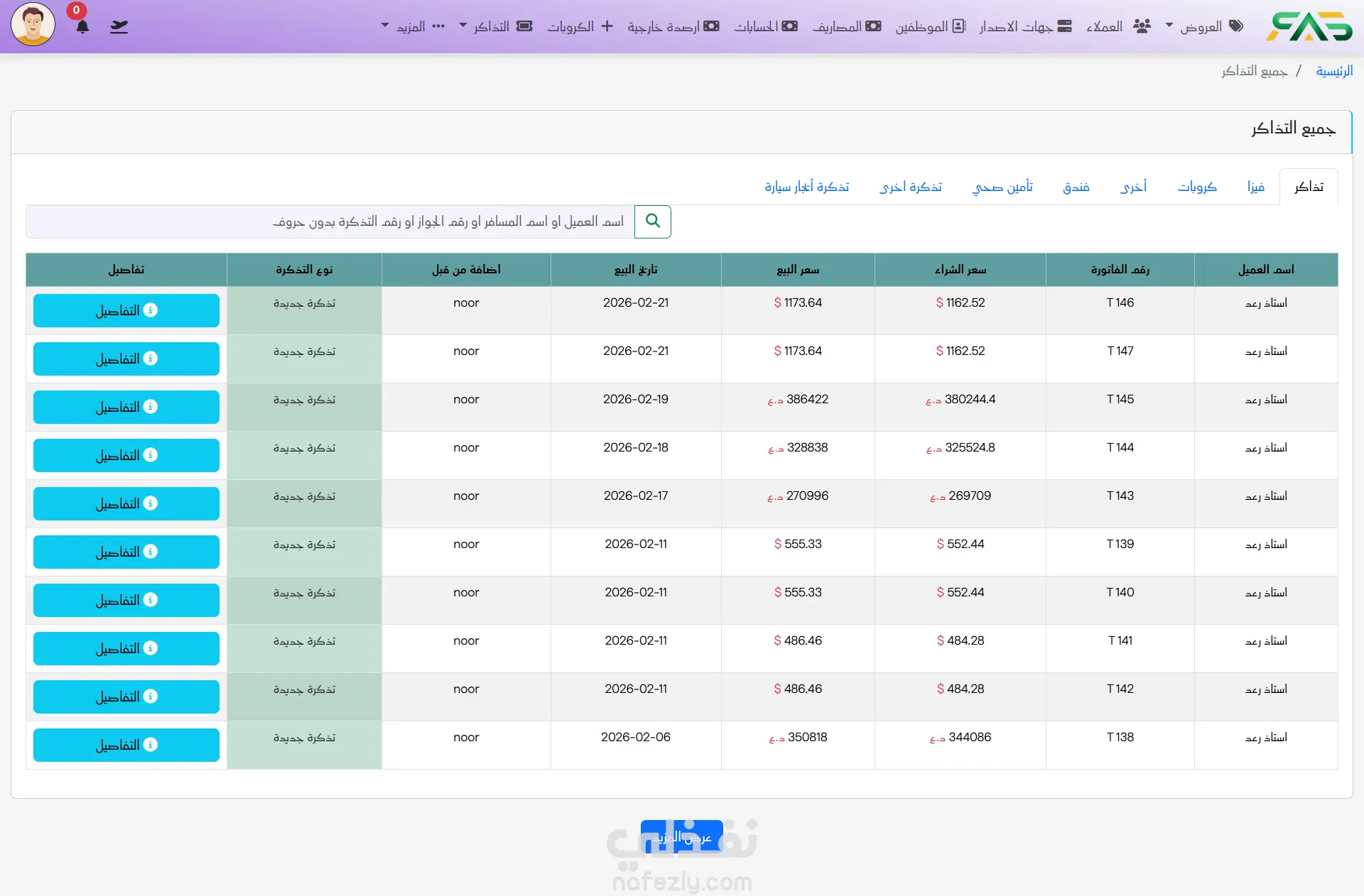 8- إدارة التذاكر: أدر تذاكر السفر والخدمات بكل تفاصيلها المالية والإدارية بسهولة تامة.