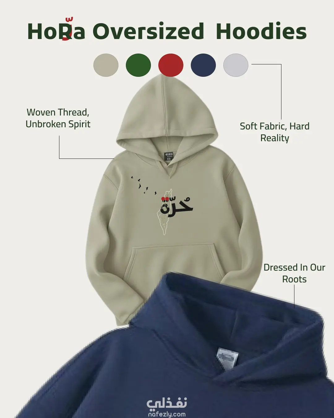 الرؤية والهدف (The Concept): مشروع "حُرّة" (HoRa) هو براند ملابس (Streetwear) يهدف لدمج الهوية الثقافية والوطنية بالأزياء العصرية. التصميم يعتمد على فكرة "الأمل المستمر"، حيث تم دمج خريطة فلسطين مع شجر الزيتون لترمز للصمود، وطيران الطيور ليرمز للحرية. عناصر التصميم (Design Elements): اللوجو: دمج بين الخط العربي (Typography) والرسم التوضيحي (Illustration). تم استخدام كلمة "حُرّة" كعنصر أساسي، مع تحويل النقط إلى دلالات لونية قوية. لوحة الألوان (Color Palette): تم اختيار ألوان ترابية (Earth tones) مثل الزيتي والبيج لتعكس الارتباط بالأرض، مع اللون الأحمر الكلاسيكي والداكن لزيادة التباين البصري. الرسائل النصية (Copywriting): تم دمج شعارات قصيرة ومؤثرة في البوستات مثل "Soft Fabric, Hard Reality" لخلق رابط عاطفي مع الجمهور. الأدوات المستخدمة (Tools): Figma: تم استخدامه لتصميم الهوية البصرية (Visual Identity) وبناء الـ Layout الخاص بمنصات التواصل الاجتماعي، مع التركيز على الـ Grid System لضمان التناسق.