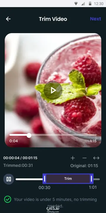 تصميم تجربة مستخدم (UX/UI) لتعديل وقص الفيديوهات - نظام أندرويد (Samsung S8)