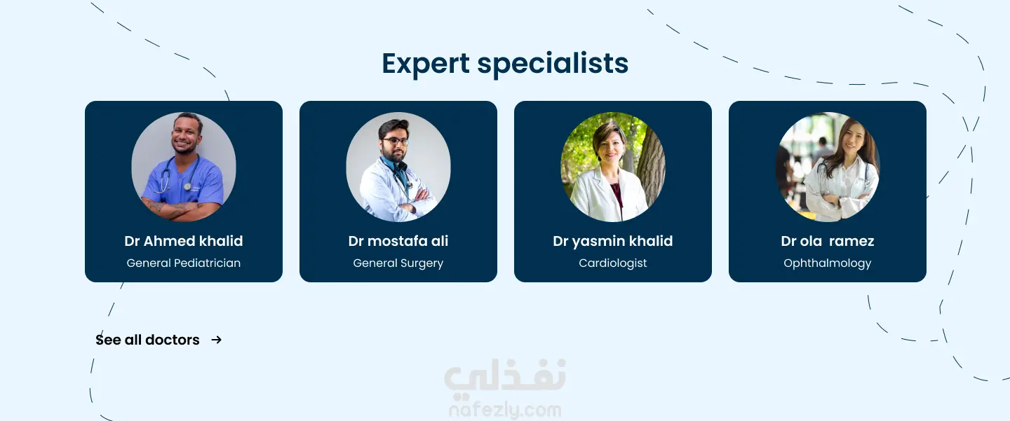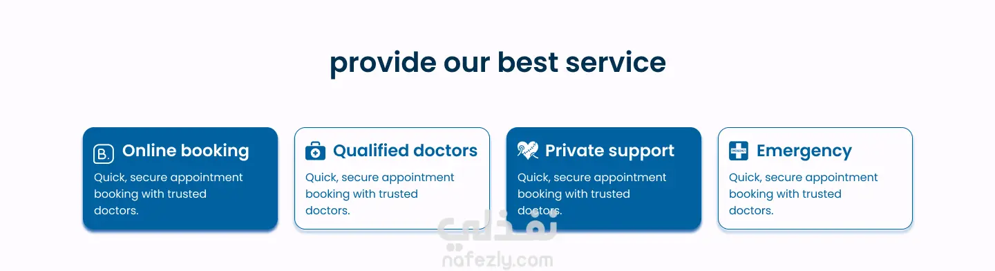 تم تصميم لاندنج بيج لمستشفى بشكل عصري واحترافي يهدف إلى تحسين تجربة المستخدم وتسهيل الوصول إلى الخدمات الطبية. يركز التصميم على وضوح المعلومات وسهولة التنقل، حيث يمكن للمستخدم البحث عن الطبيب المناسب حسب التخصص، ومعرفة مواعيد العمل، وحجز الكشف بكل سهولة. يتضمن الموقع عرضًا مميزًا لأقسام المستشفى، الخدمات الطبية المتاحة، وأحدث الأجهزة المستخدمة، مع إبراز نقاط القوة مثل جودة الرعاية الصحية وفريق الأطباء المتخصصين. كما تم تصميم الواجهة بشكل متجاوب لتعمل بكفاءة على جميع الأجهزة (موبايل – تابلت – ديسكتوب). الهدف من اللاندنج بيج هو تعزيز ثقة المرضى وتقديم تجربة رقمية سلسة تساعدهم في اتخاذ قرار سريع بالحجز والتواصل مع المستشفى.