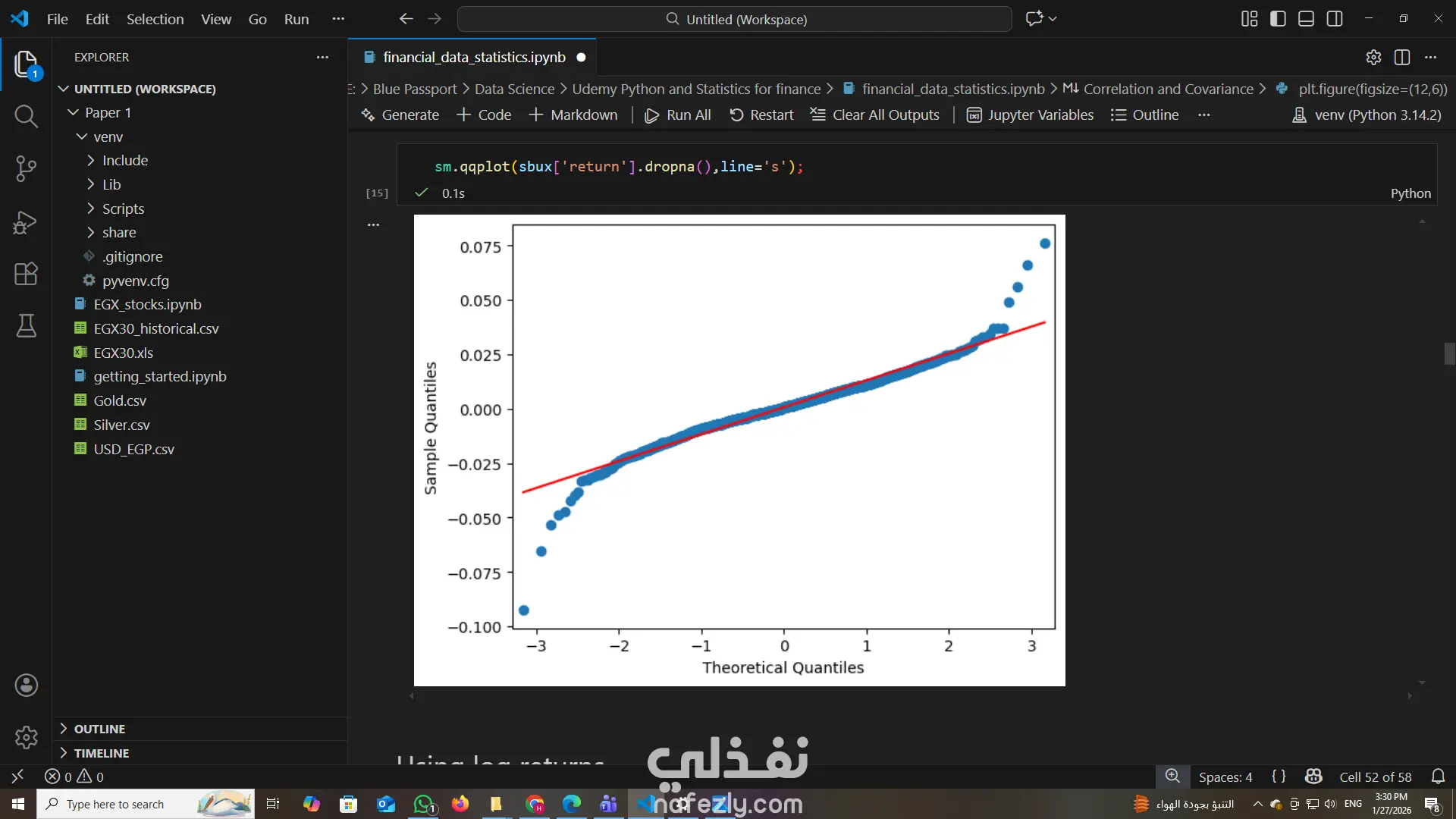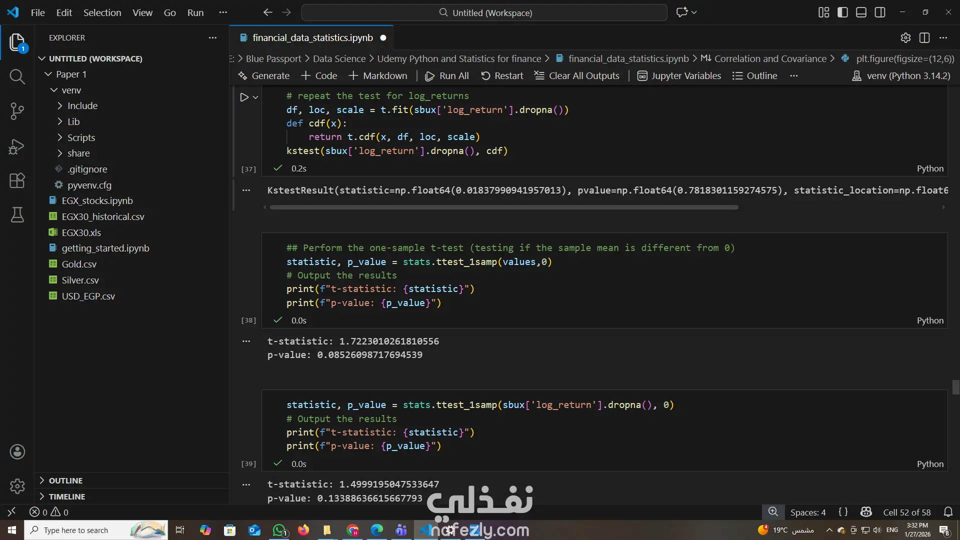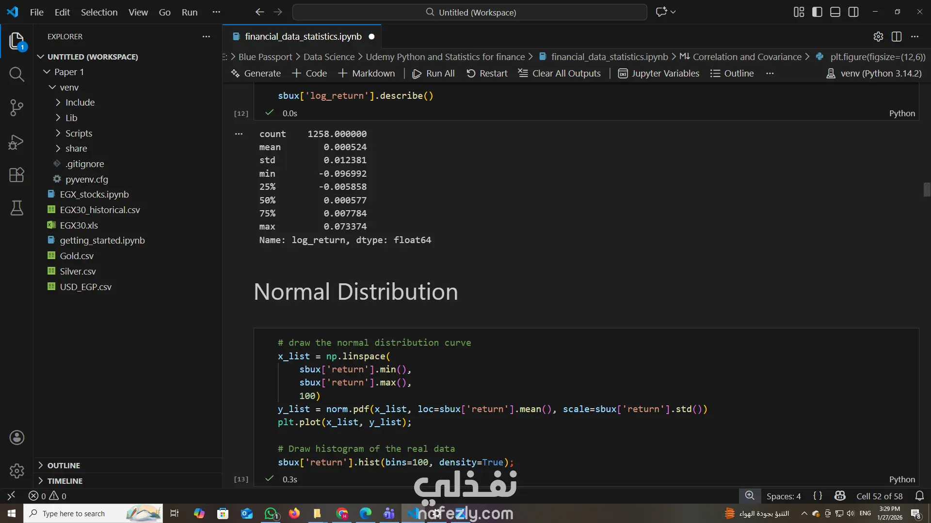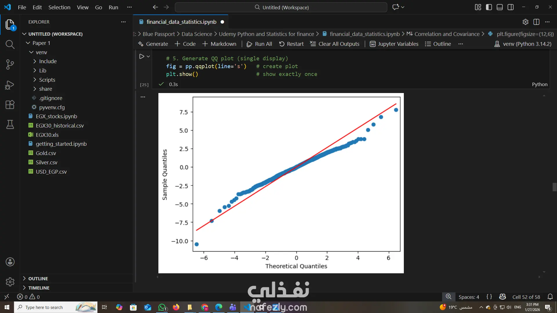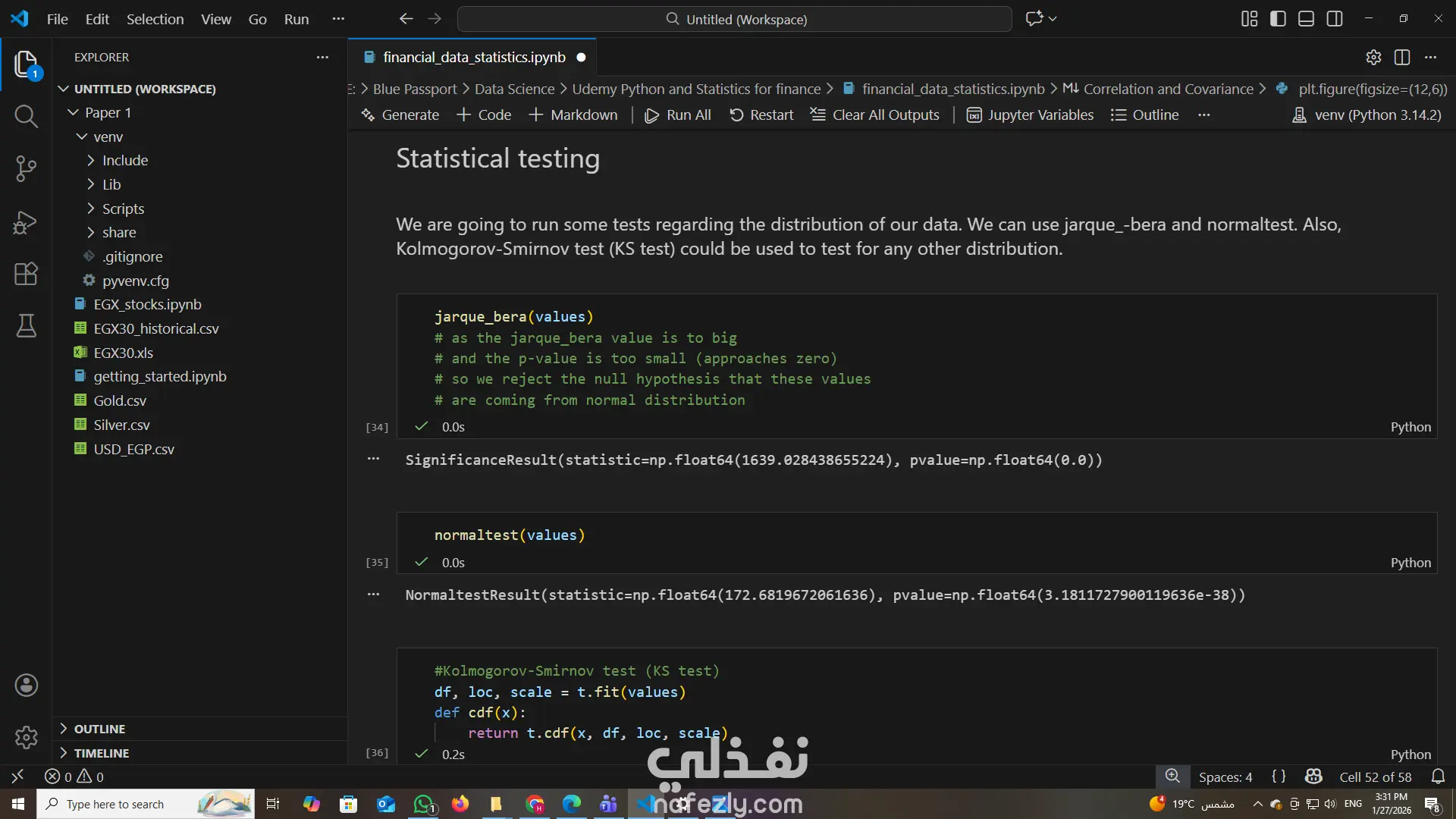 تطبيق اختبارات إحصائية متنوعة مثل اختبار جاك-بيرا (Jarque-Bera)، اختبار كولموغوروف-سميرنوف (KS Test)، واختبار التوزيع الطبيعي.
