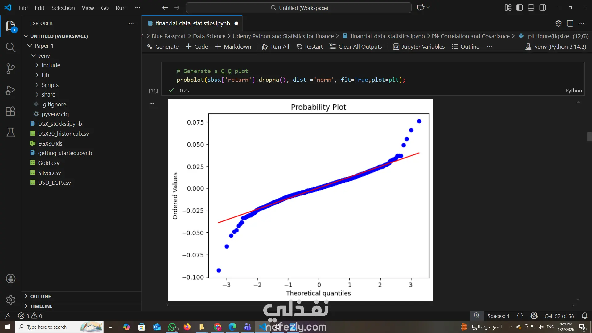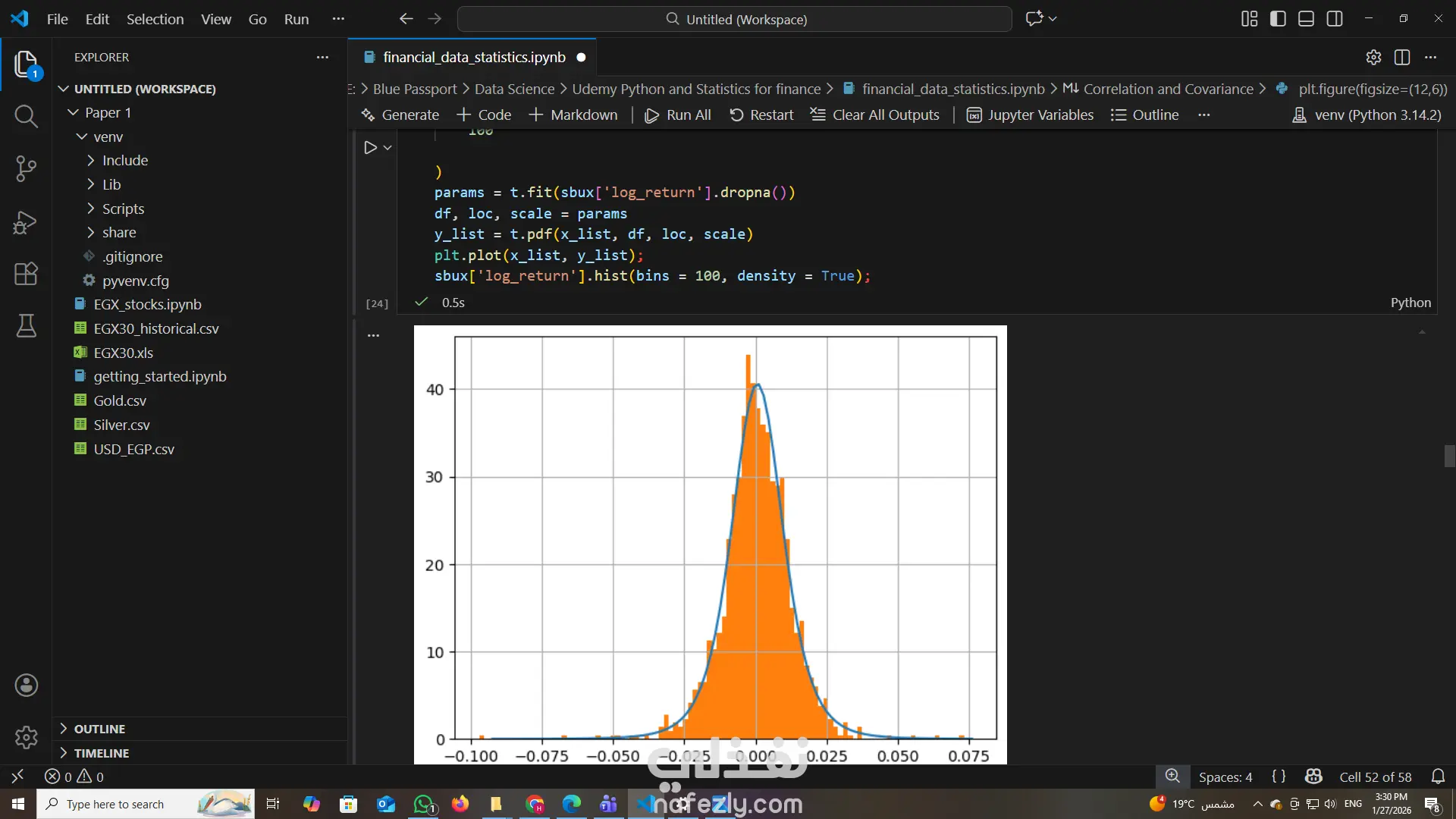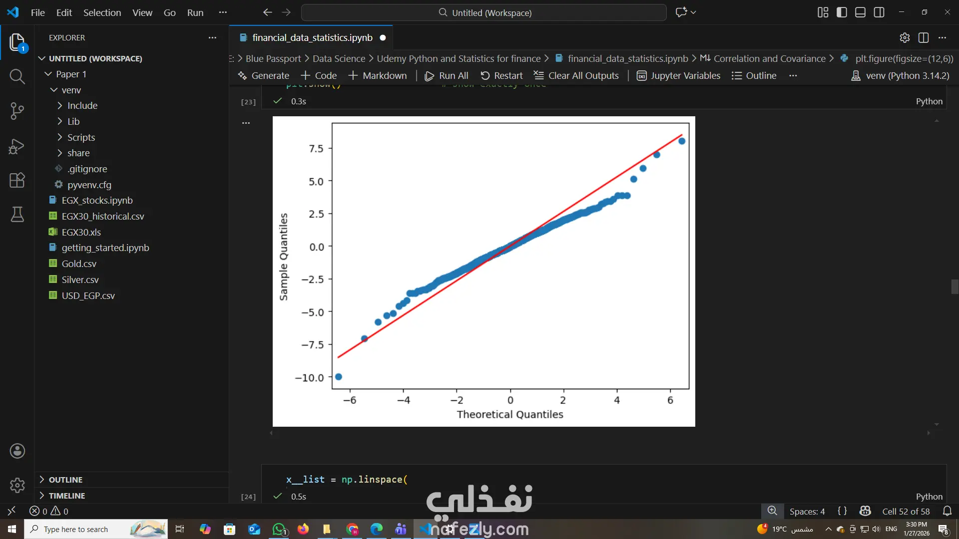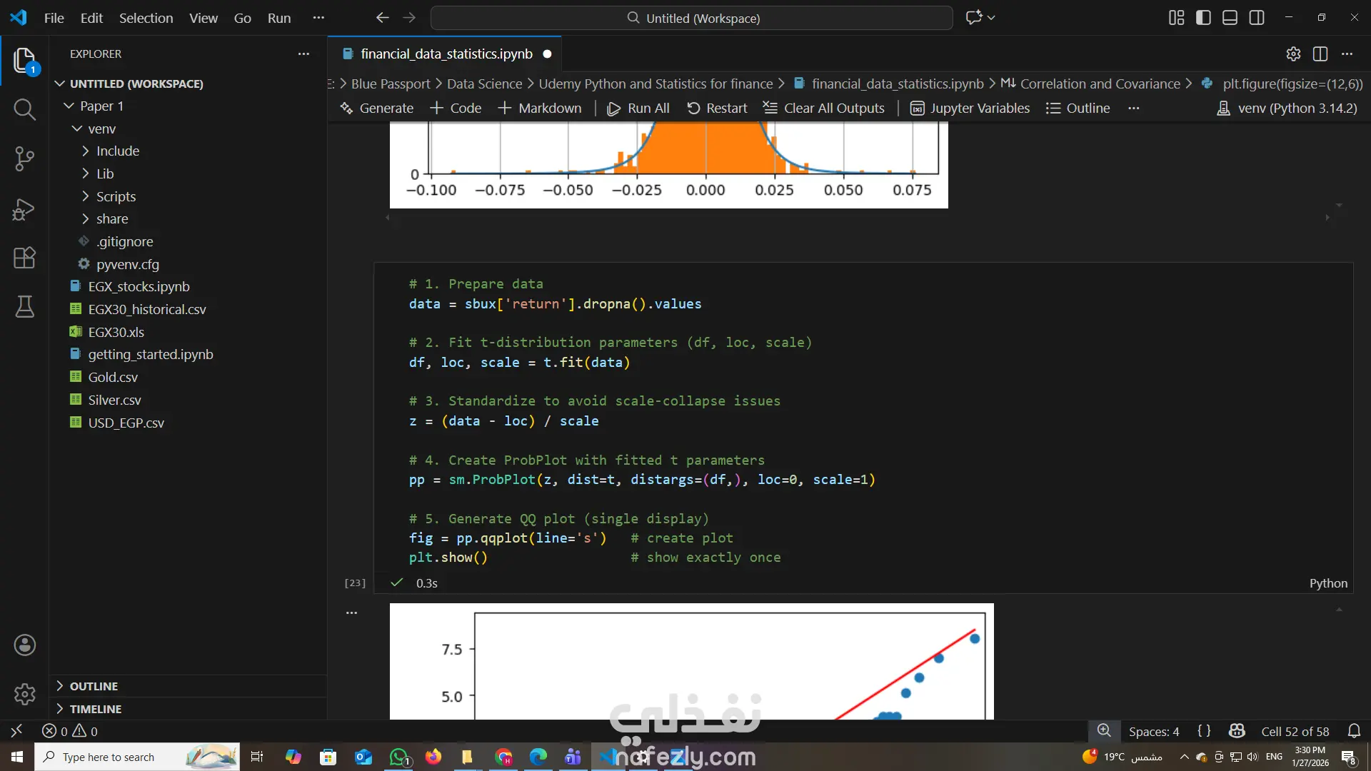 تطبيق اختبارات إحصائية متنوعة مثل اختبار جاك-بيرا (Jarque-Bera)، اختبار كولموغوروف-سميرنوف (KS Test)، واختبار التوزيع الطبيعي.