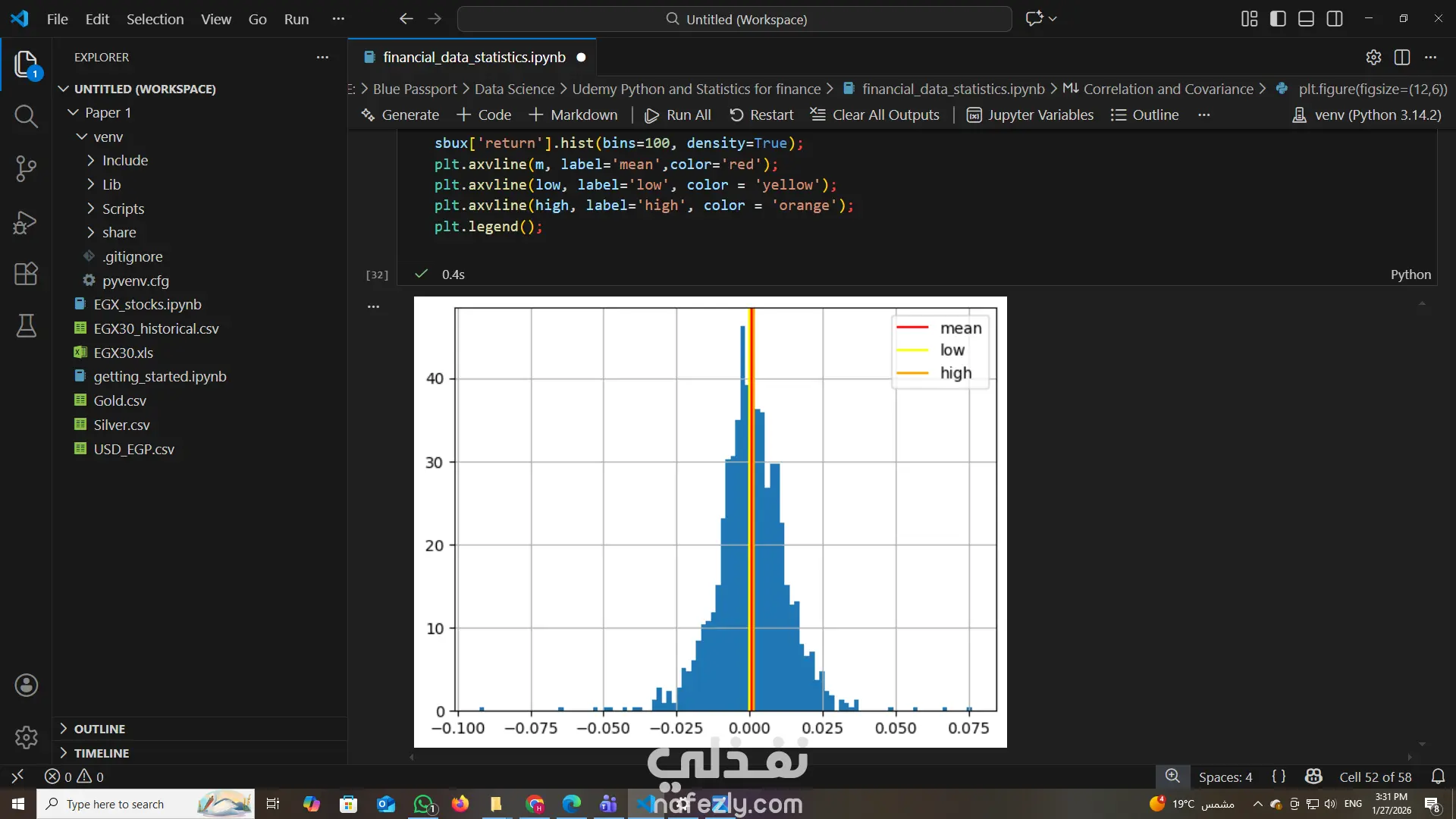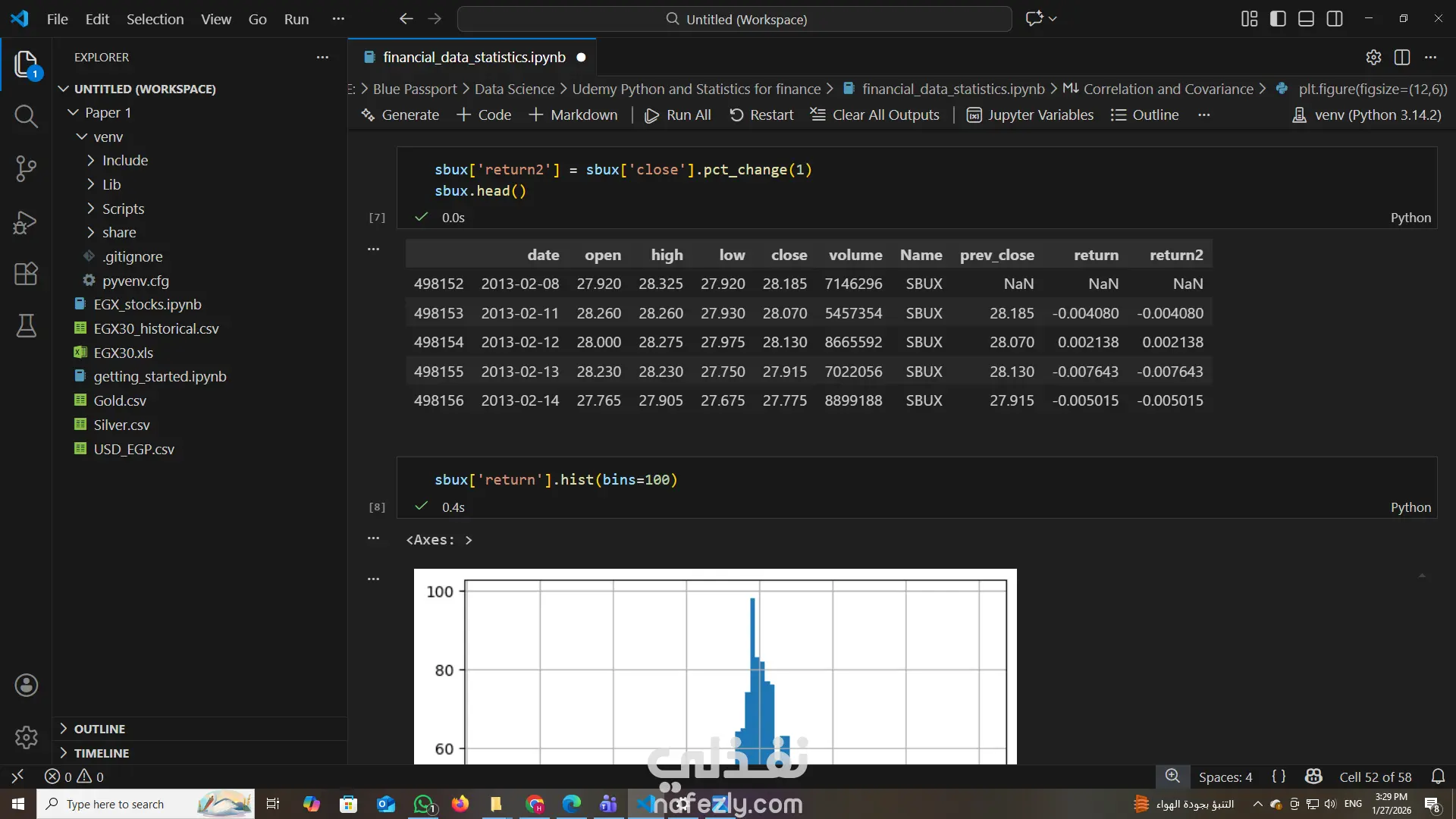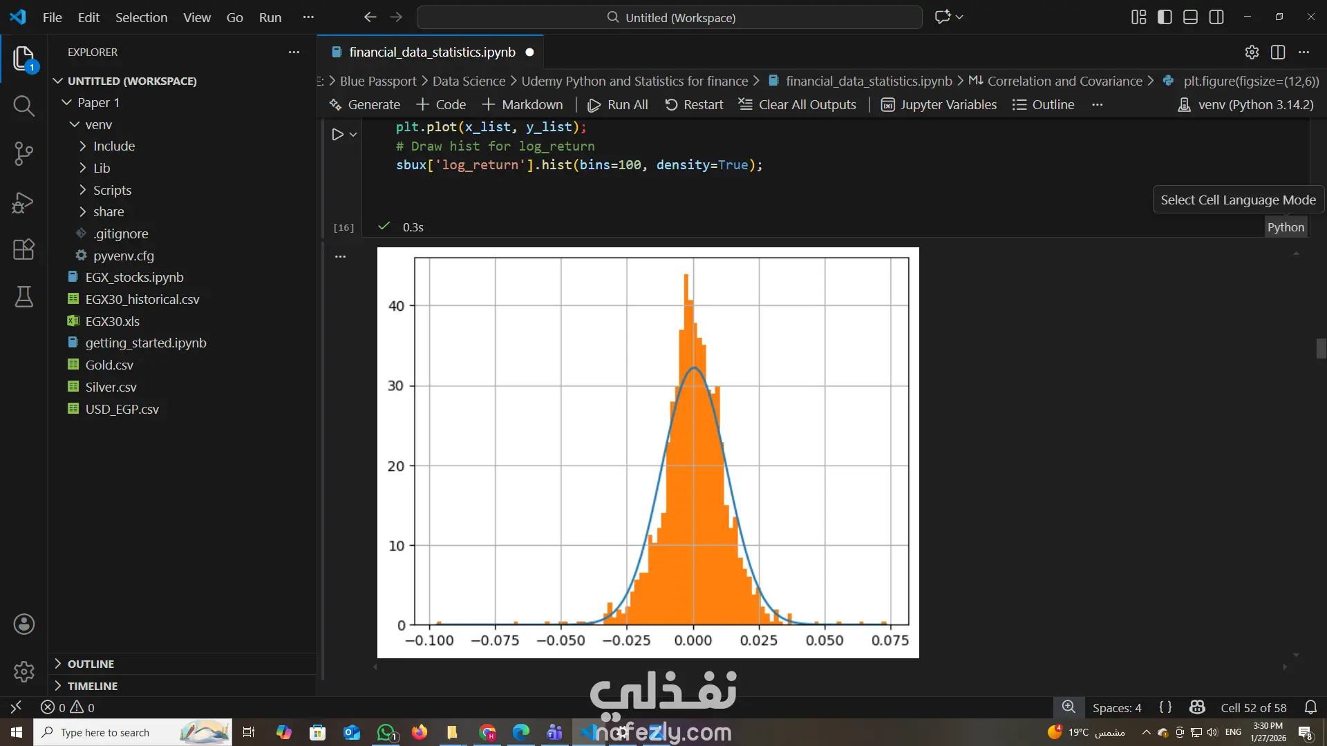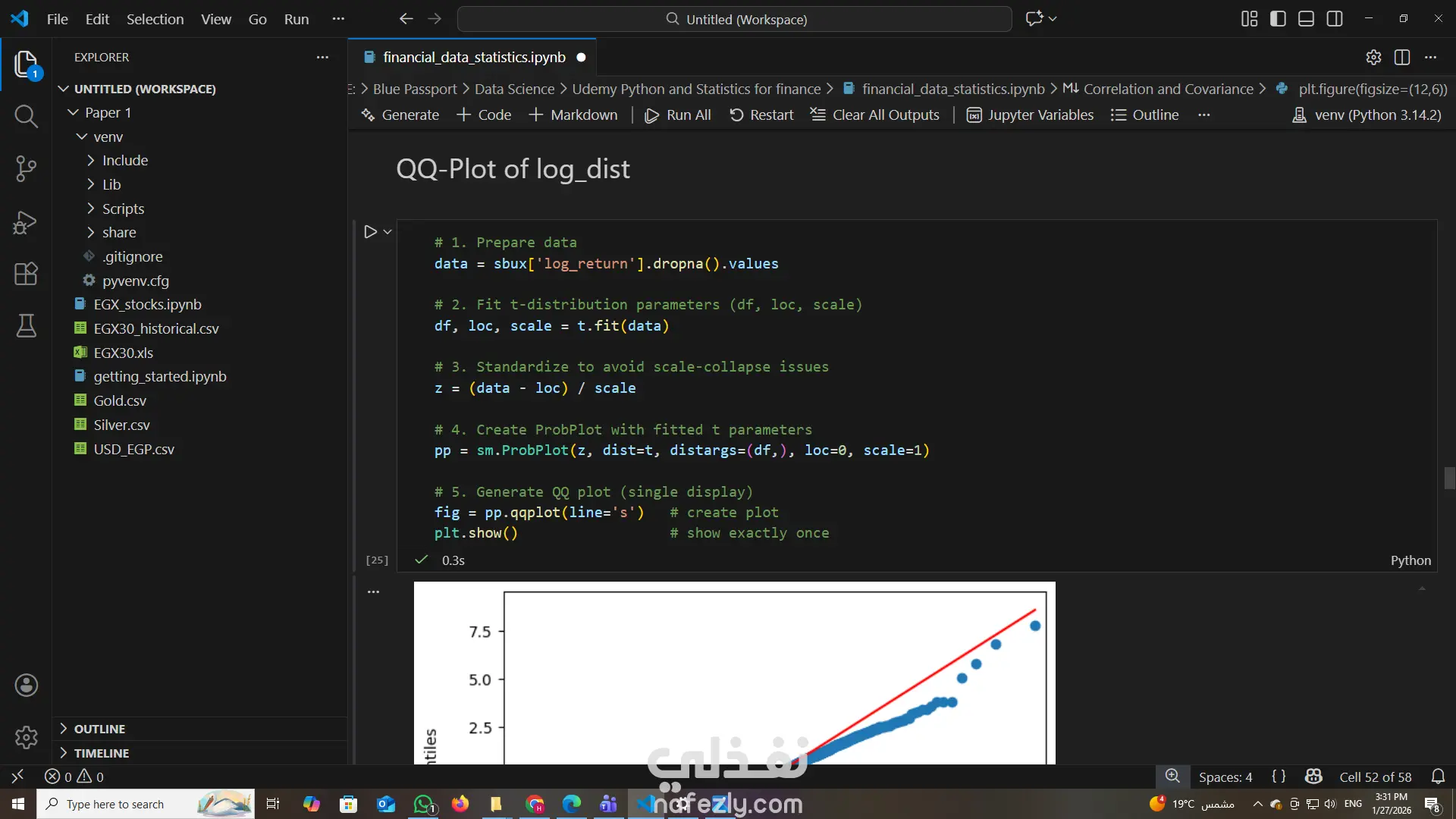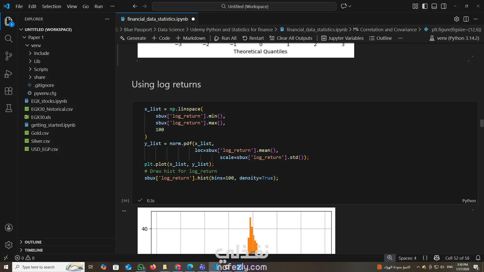 تطبيق اختبارات إحصائية متنوعة مثل اختبار جاك-بيرا (Jarque-Bera)، اختبار كولموغوروف-سميرنوف (KS Test)، واختبار التوزيع الطبيعي.