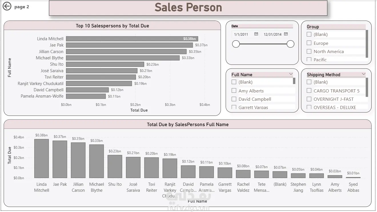تقارير متقدمة لتحليل و مراقبة اداء الاشخاص والمبيعات لقاعدة بيانات AdventureWorks 2022