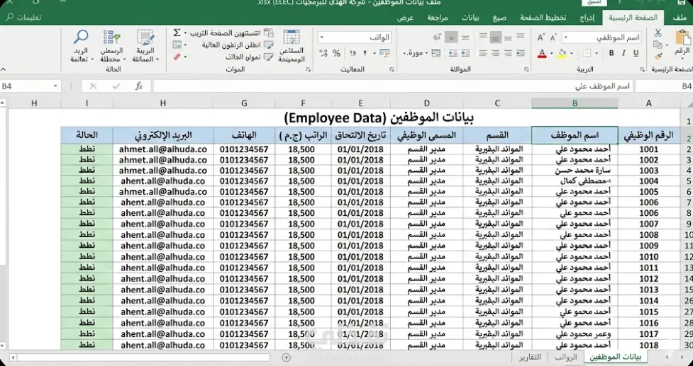 اقوم بادخال بانات العمال علي ملف اكسل